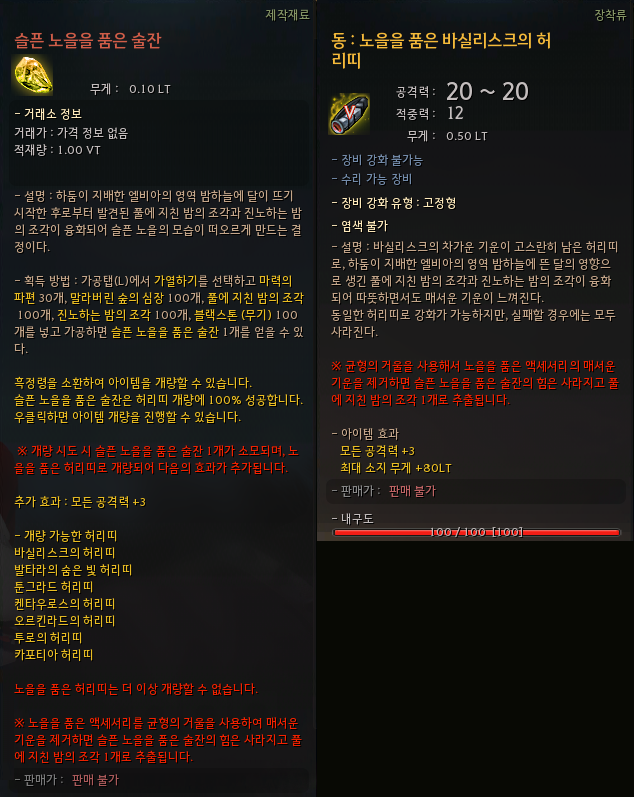- 슬픈 노을을 품은 술잔은 '개량'을 통해 사용할 수 있습니다.
