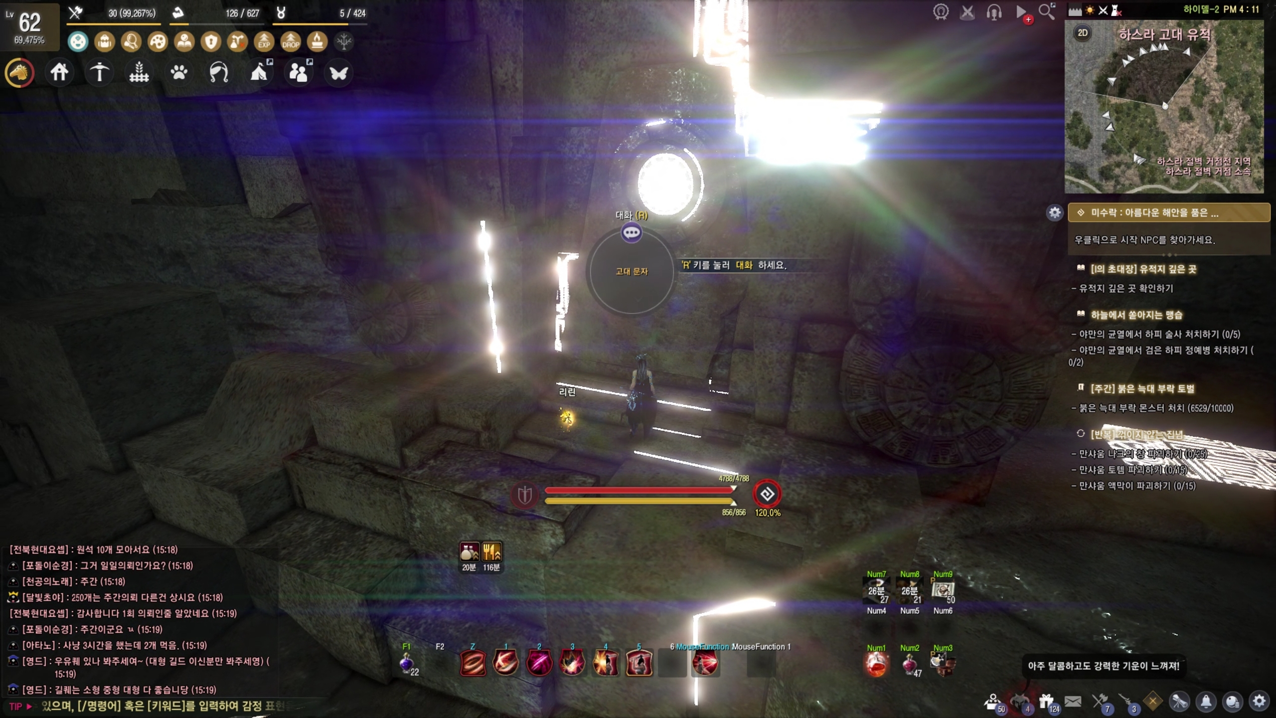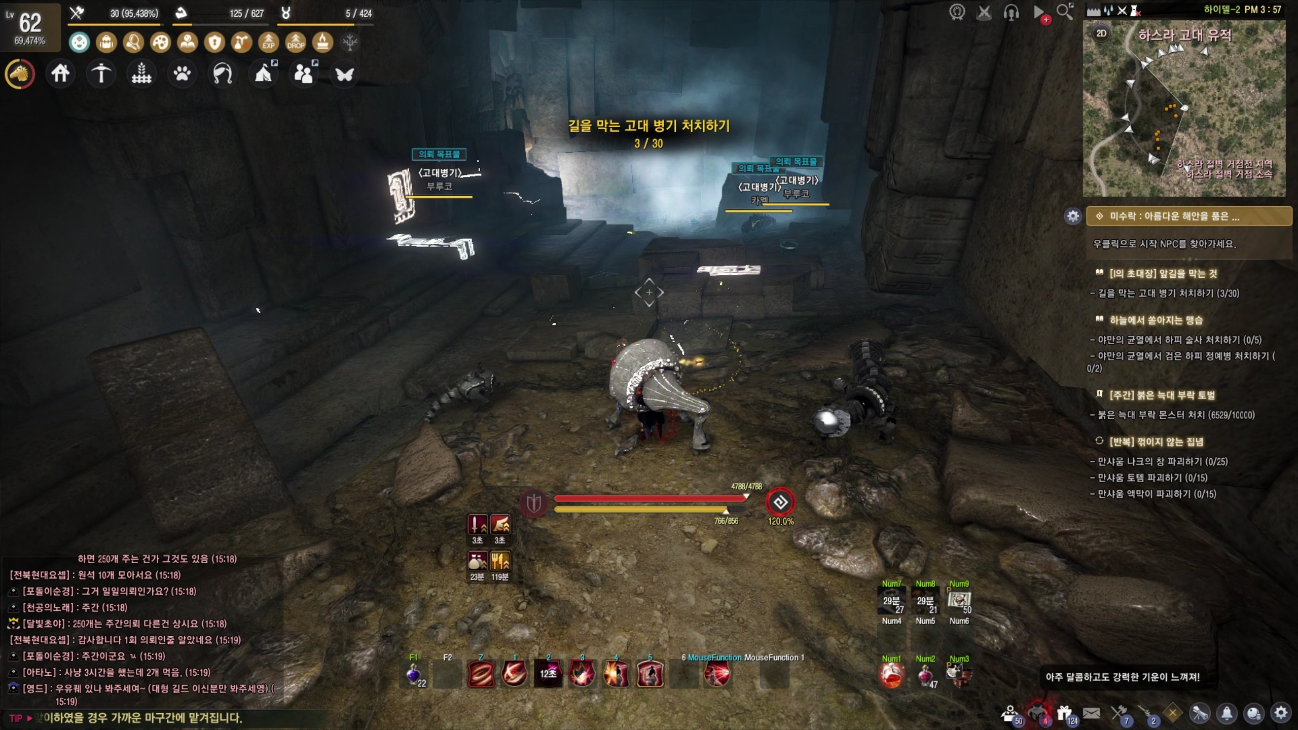 - 길을 막는 고대 병기 처치하기 (0/30)
