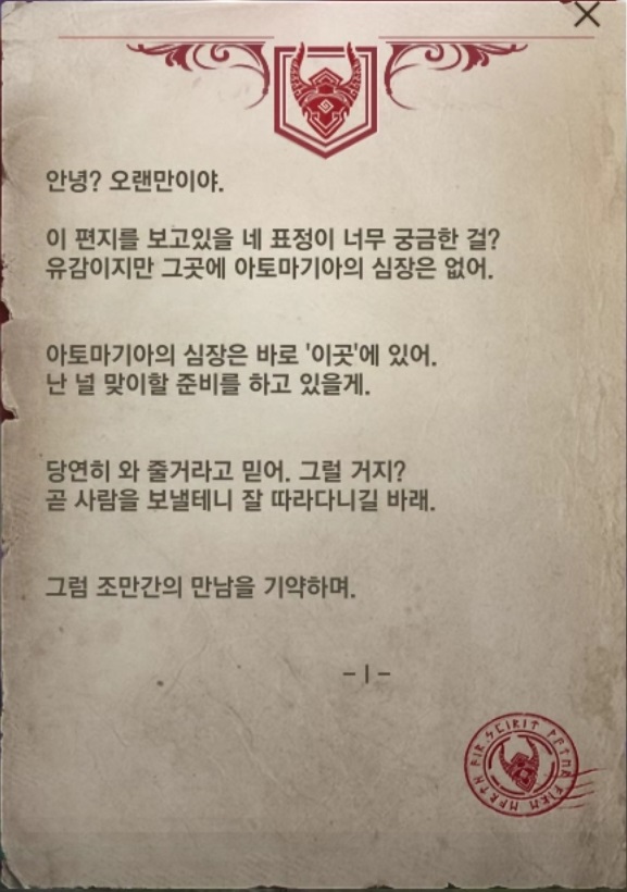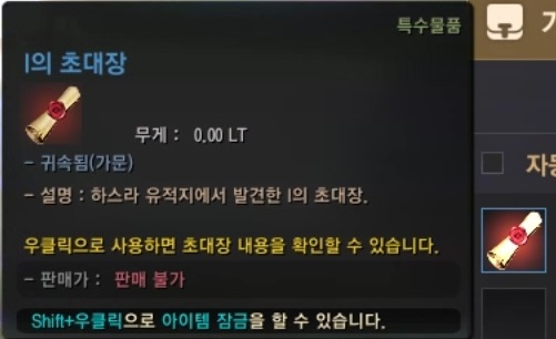 해당 의뢰를 완료하면 아토락시온 메인 의뢰를 진행할 수 있는 I의 초대장을 획득할 수 있게 됩니다.