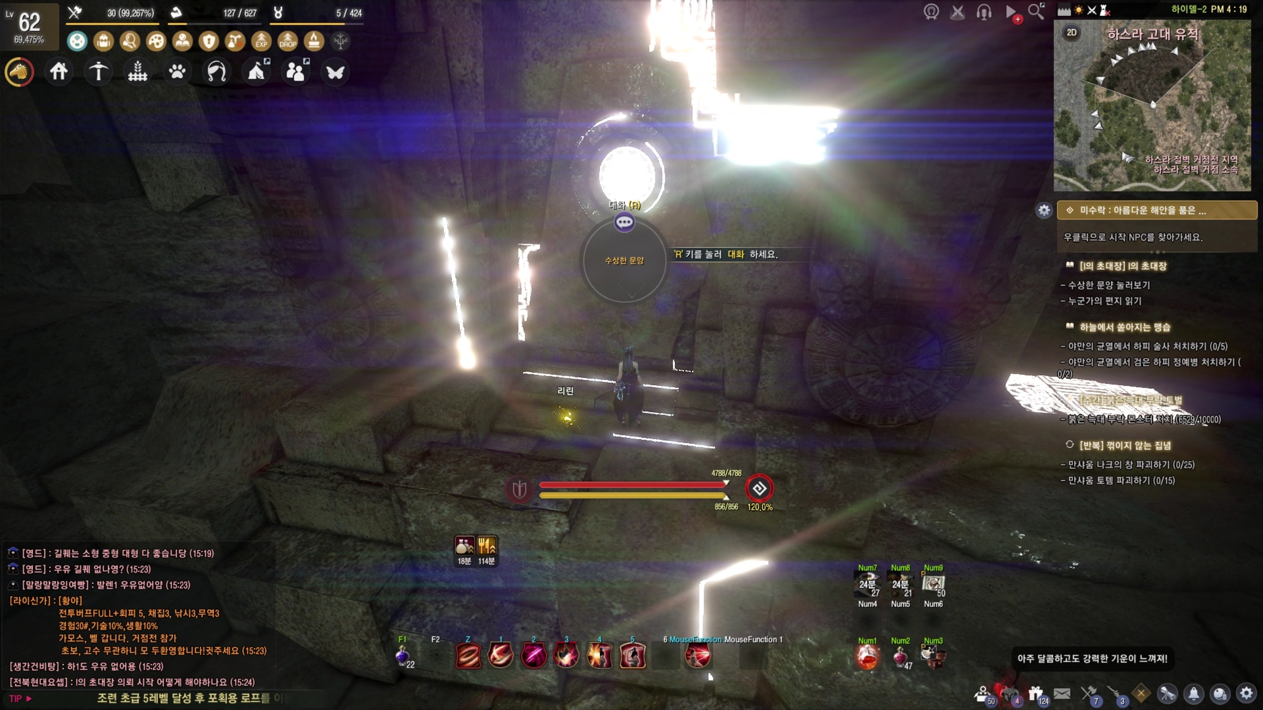 - 하스라 유적지 입구에서 일레즈라의 행방 묻기
