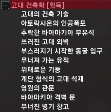 여기까지 하면 고대 건축학 지식을 전부 획득할 수 있어요.