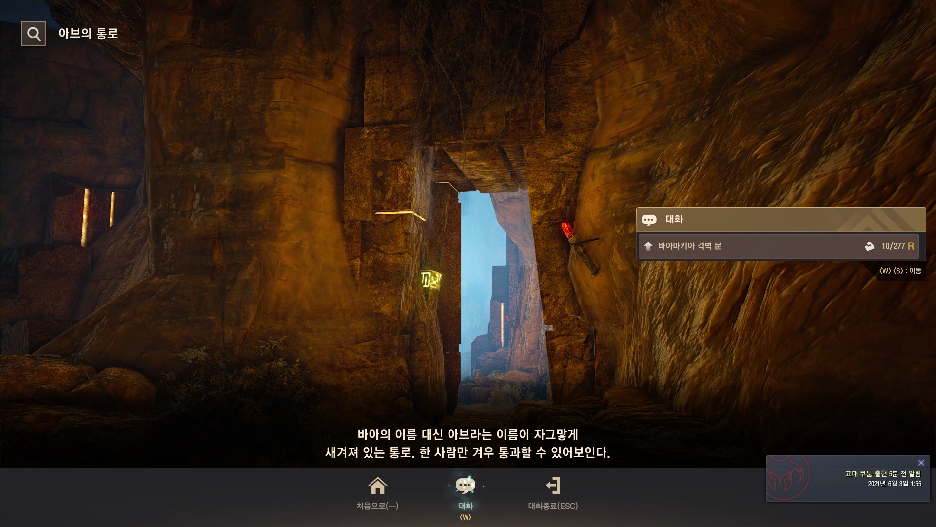 → 바아의 심장에서 바아의 머리로 넘어가기 전 다리에 상호작용 포인트가 있어요. 지식 획득 시 기운 10이 소모돼요.