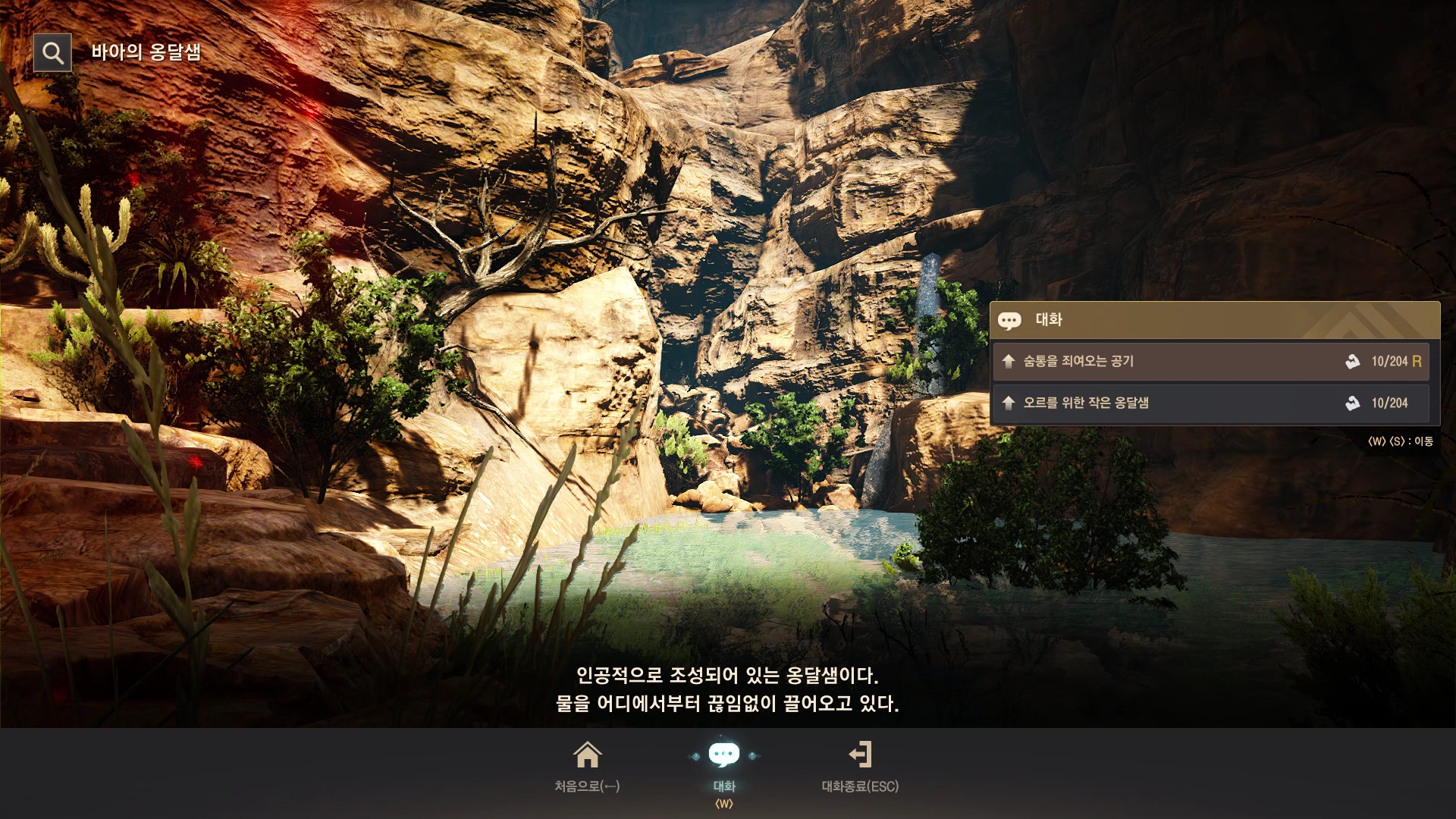 → 바아의 창공에서 길을 따라 아래로 내려오면 왼쪽에 있는 작은 옹달샘 중앙에 있어요. 지식 획득 시 기운 10이 소모돼요.