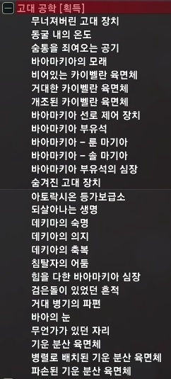 2021.06.02 업데이트된 아토락시온에서 획득할 수 있는 고대 공학 지식 정보입니다.