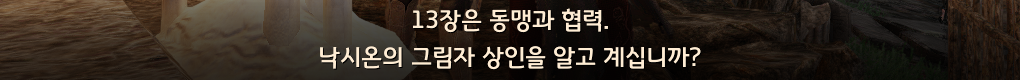| 13장 | 낙시온 상인, 비앙카 트리스 만나기 | 의뢰 완료 후 온전한 누베르 역린 주간의뢰 수주 가능 | ||||
