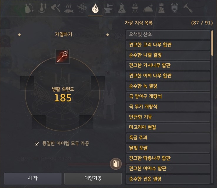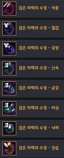 → 노란 등급의 검은 마력의 수정들을 가공(L) - 가열하기로 획득할 수 있어요.