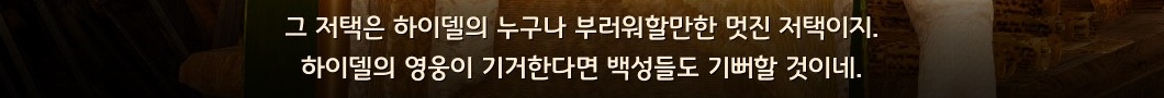 - 이 엄청난 저택의 소유주는 누구인지, 많은 이들이 호기심을 드러내며 여관에서는 연일 관련 이야기가 끊이지 않고 있는 가운데 하이델의 영주 크루시오 도몬가트가 이 장원에 거주할 모험가를 찾고 있다고 합니다. 자세한 이야기는 관련된 의뢰를 통해 확인할 수 있습니다.