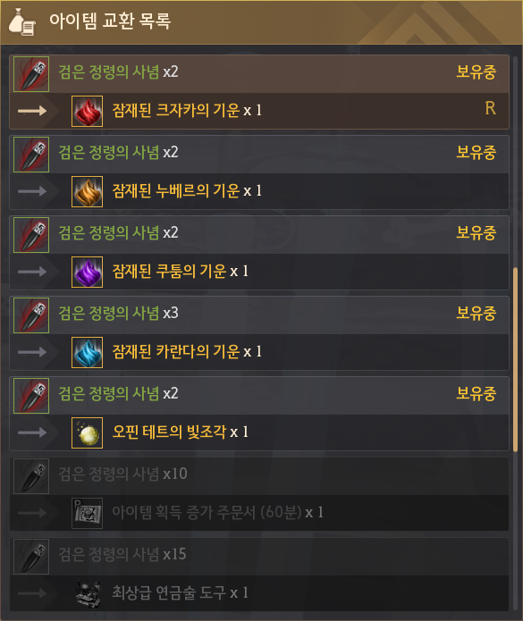 ● 검은 정령의 사념 아이템의 교환 품목에 오핀 테트의 빛조각 아이템이 추가되었습니다.
