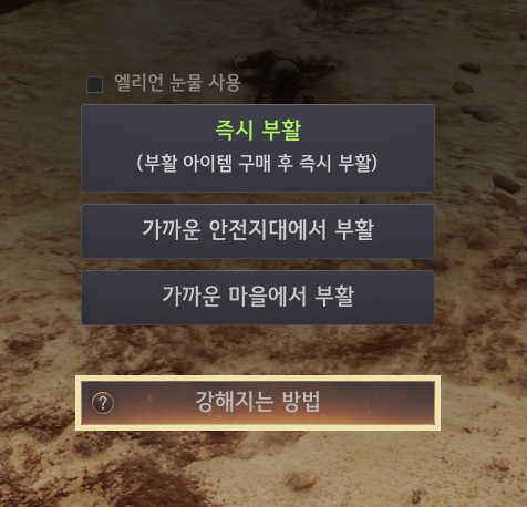 ● 신규, 복귀 모험가 캐릭터가 사망 시, 사망 화면에서 '강해지는 방법'에 대해 가이드를 볼 수 있는 버튼이 추가되었습니다.