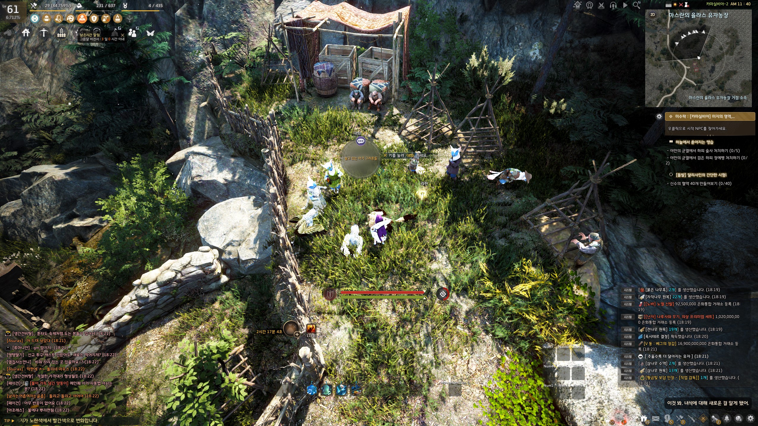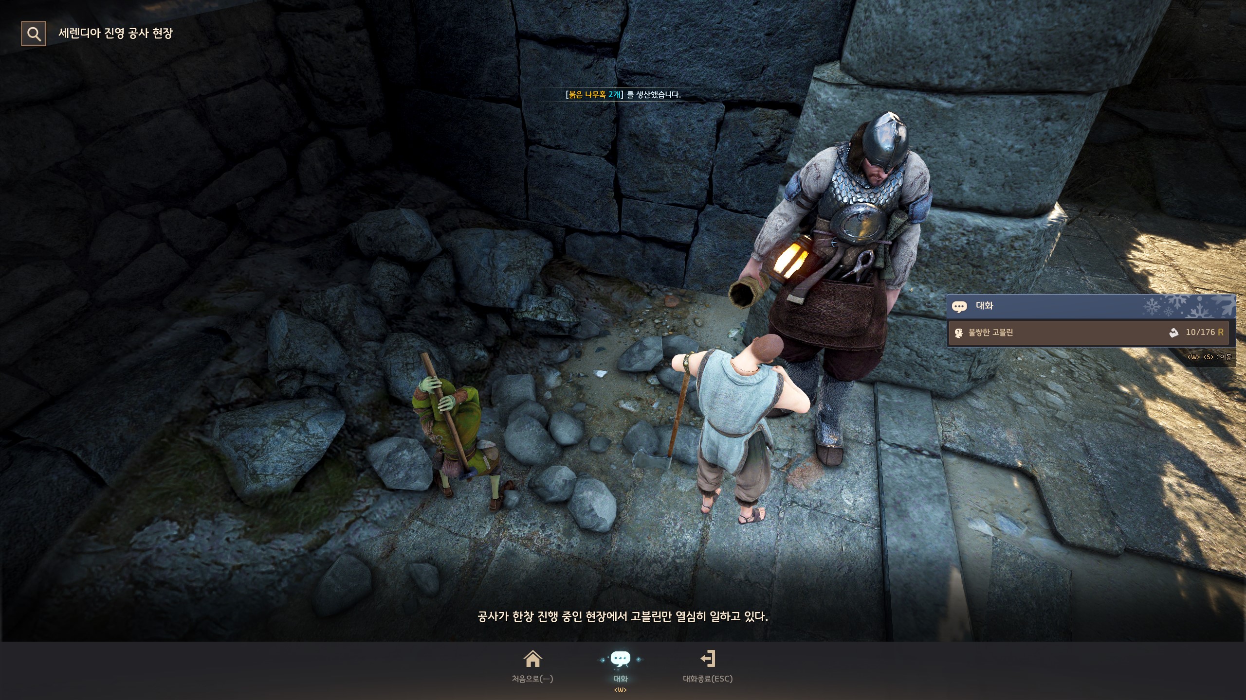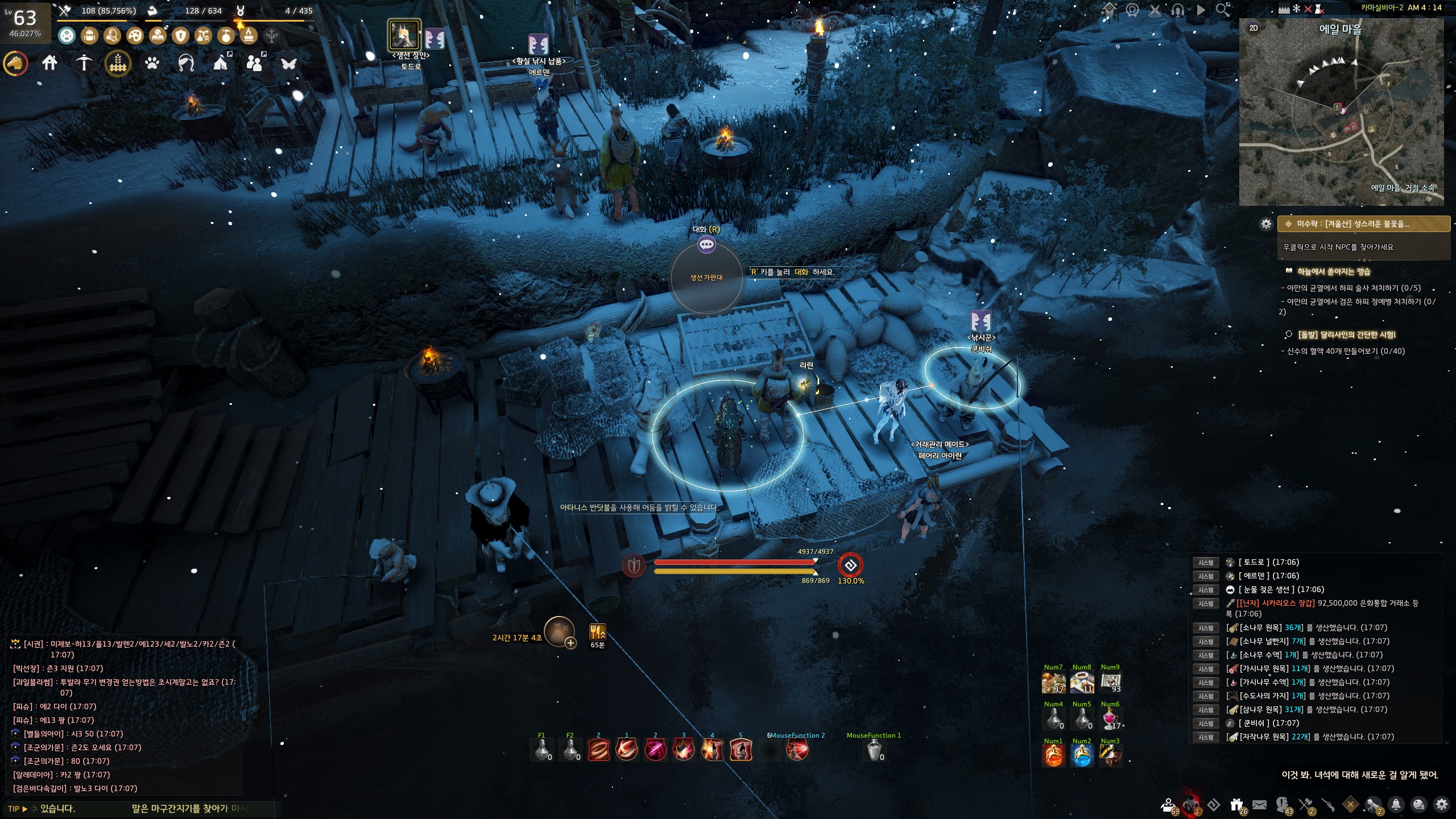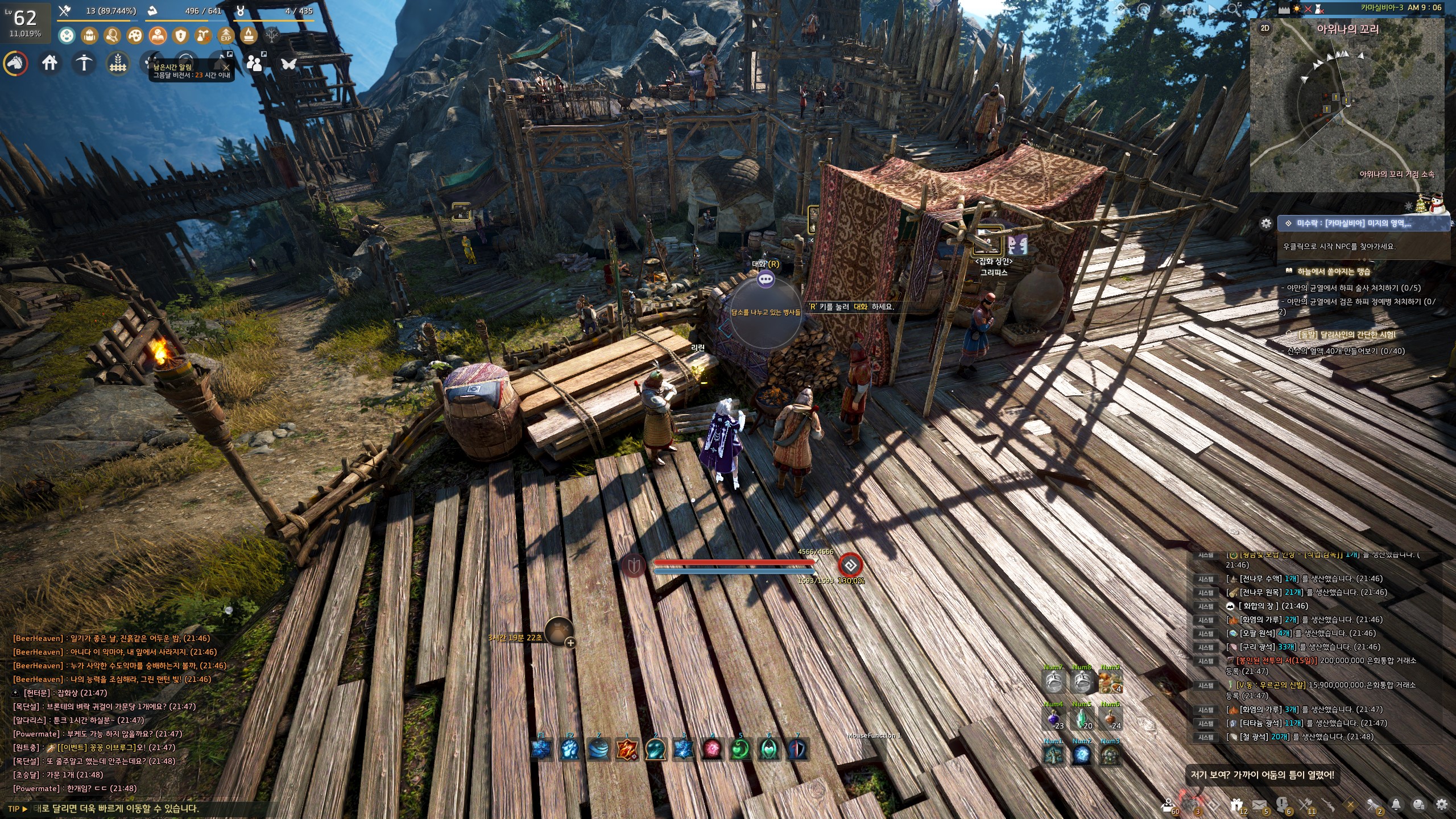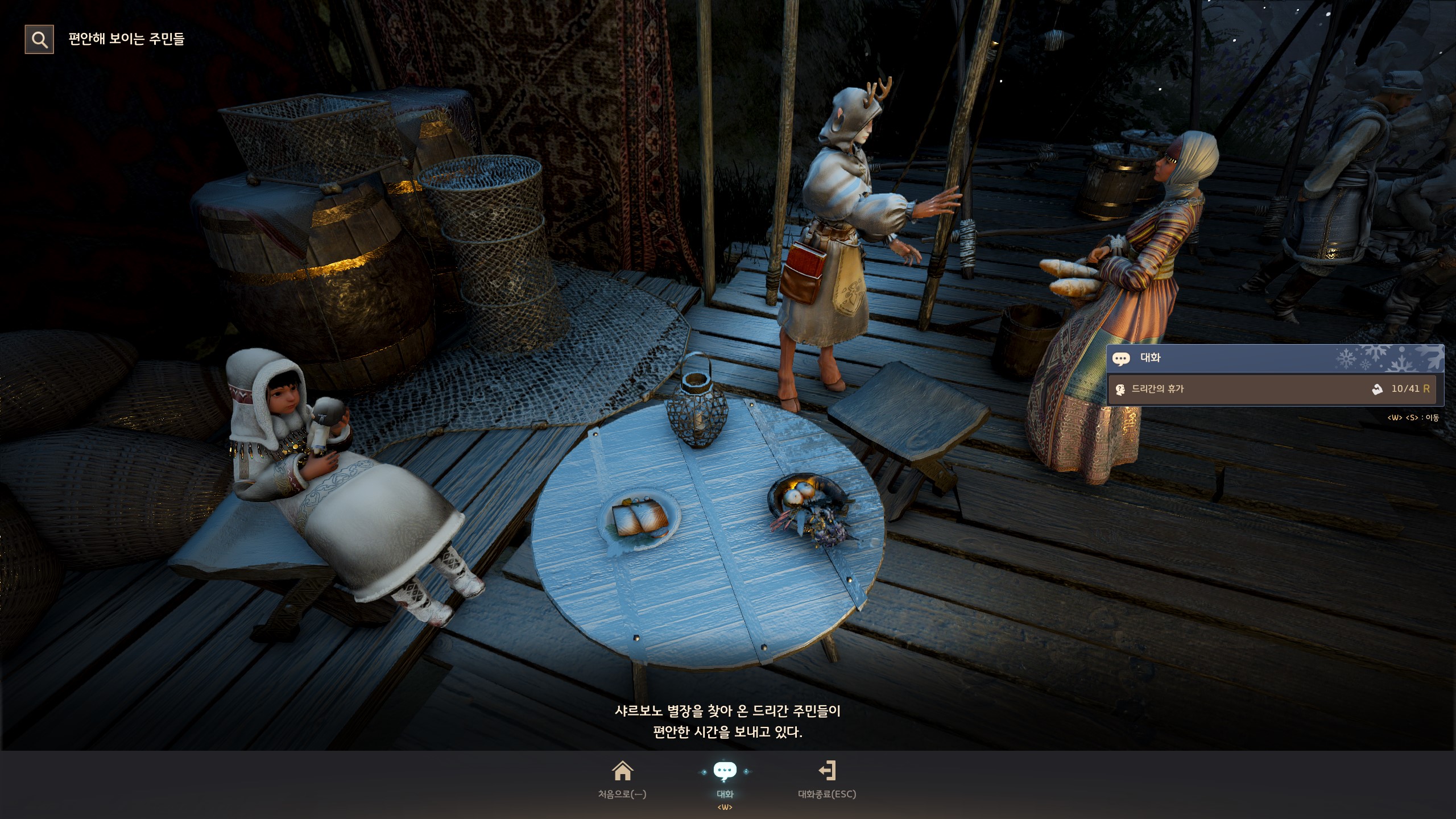 → 에일 마을 <낚시꾼> 쿤비쉬 옆에서 지식을 획득할 수 있어요. 지식 획득 시 기운 10이 소모돼요.