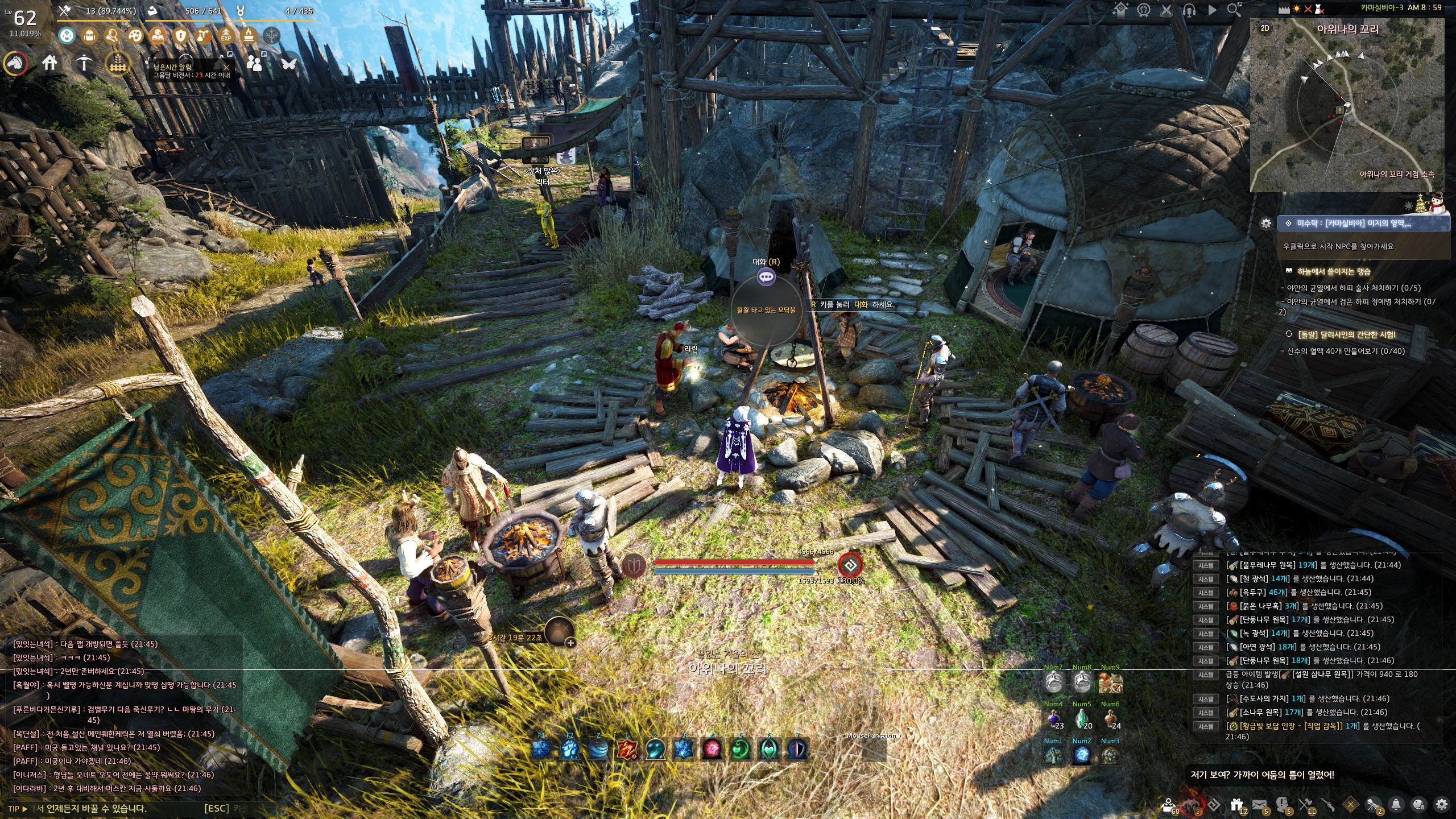 → 아위나의 꼬리 <상처 많은> 빅터 옆의 모닥불에서 지식을 획득할 수 있어요. 지식 획득 시 기운 10이 소모돼요.