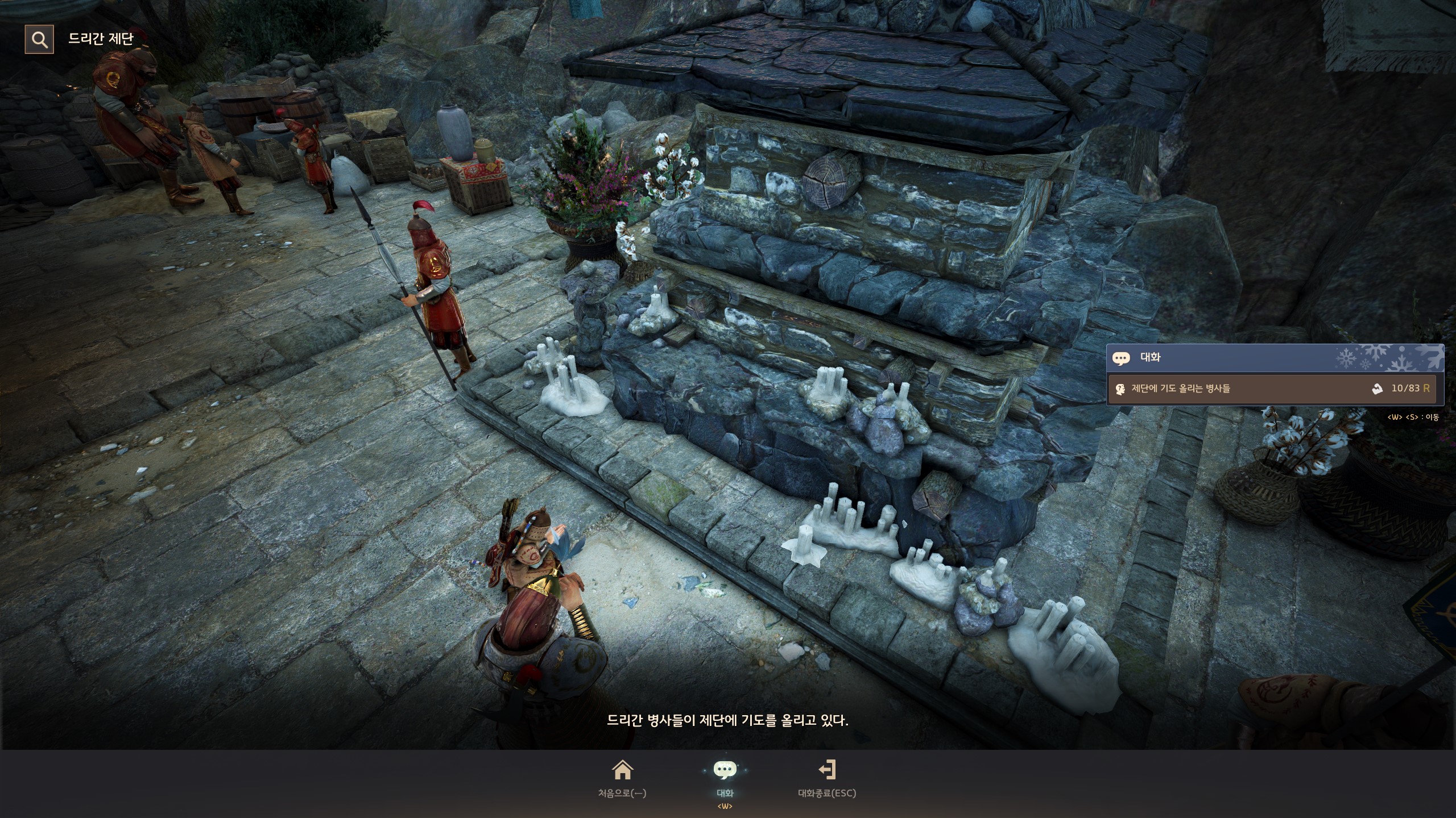 → 발락스 제단 <검문소장> 아로와즈 오른쪽 제단에서 지식을 획득할 수 있어요. 지식 획득 시 기운 10이 소모돼요.