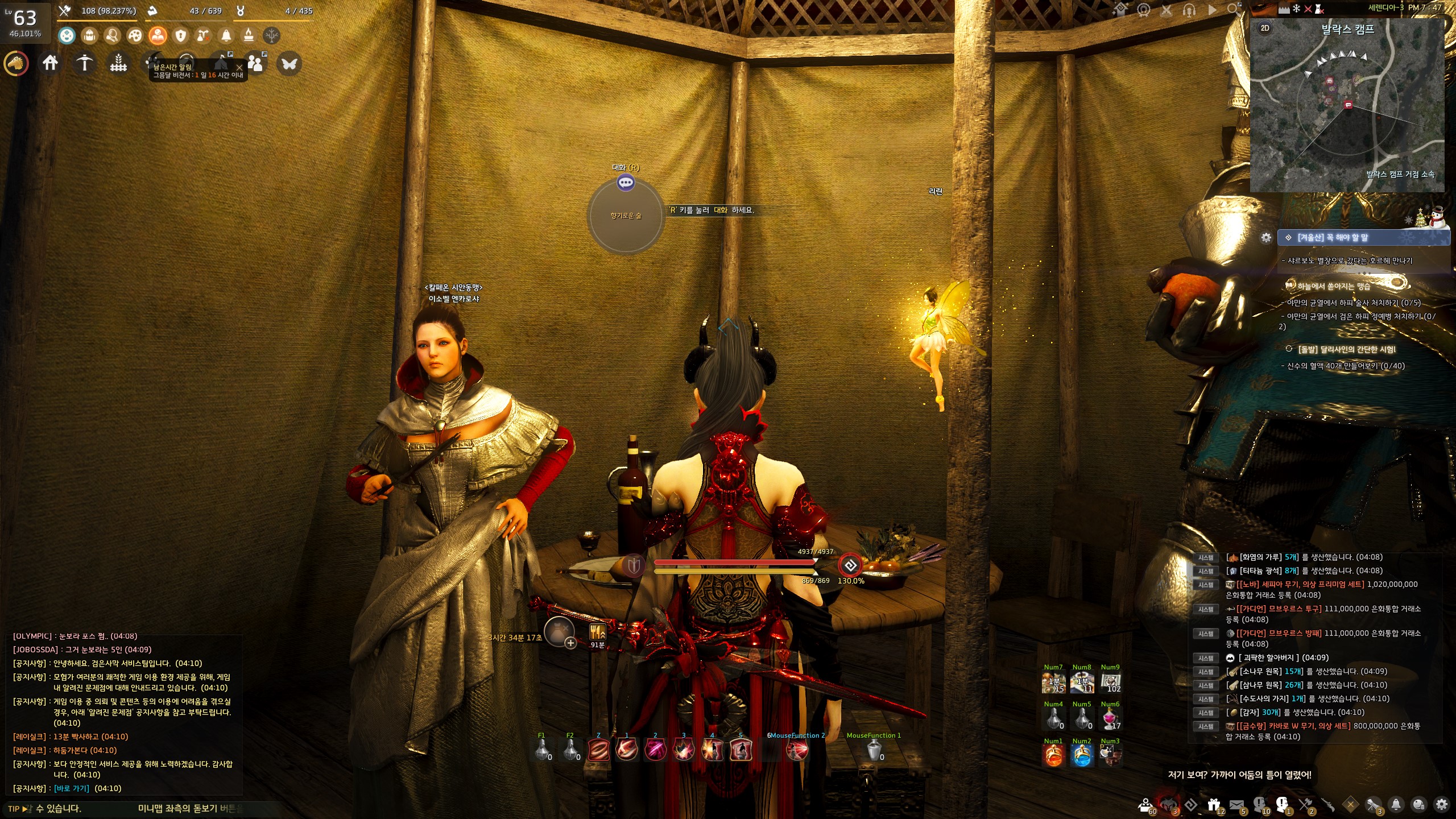 → 발락스 캠프 <칼페온 시안동맹> 이소벨 엔카로샤 옆에서 지식을 획득할 수 있어요. 지식 획득 시 기운 10이 소모돼요.