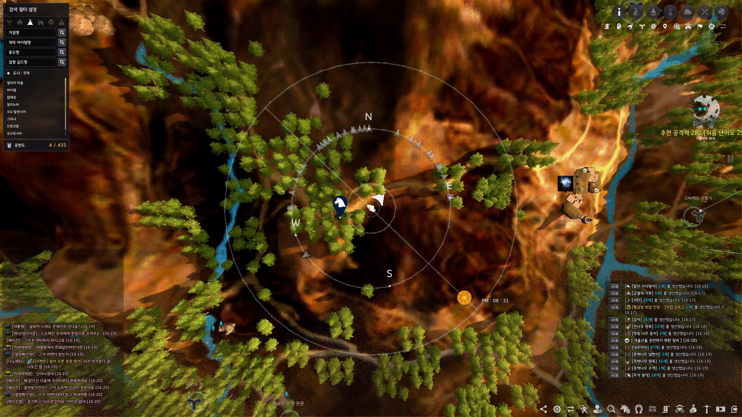 지식을 획득할 때 기운이 필요한 지식이 많으니 기운을 채운 캐릭터로 진행해 주세요.
