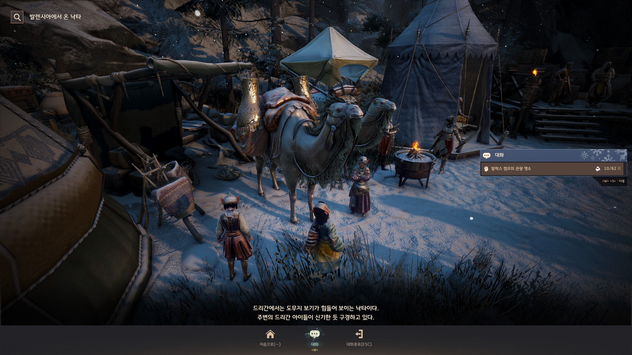 → 발락스 캠프 <무역 관리> 조르그 옆에서 지식을 획득할 수 있어요. 지식 획득 시 기운 10이 소모돼요.