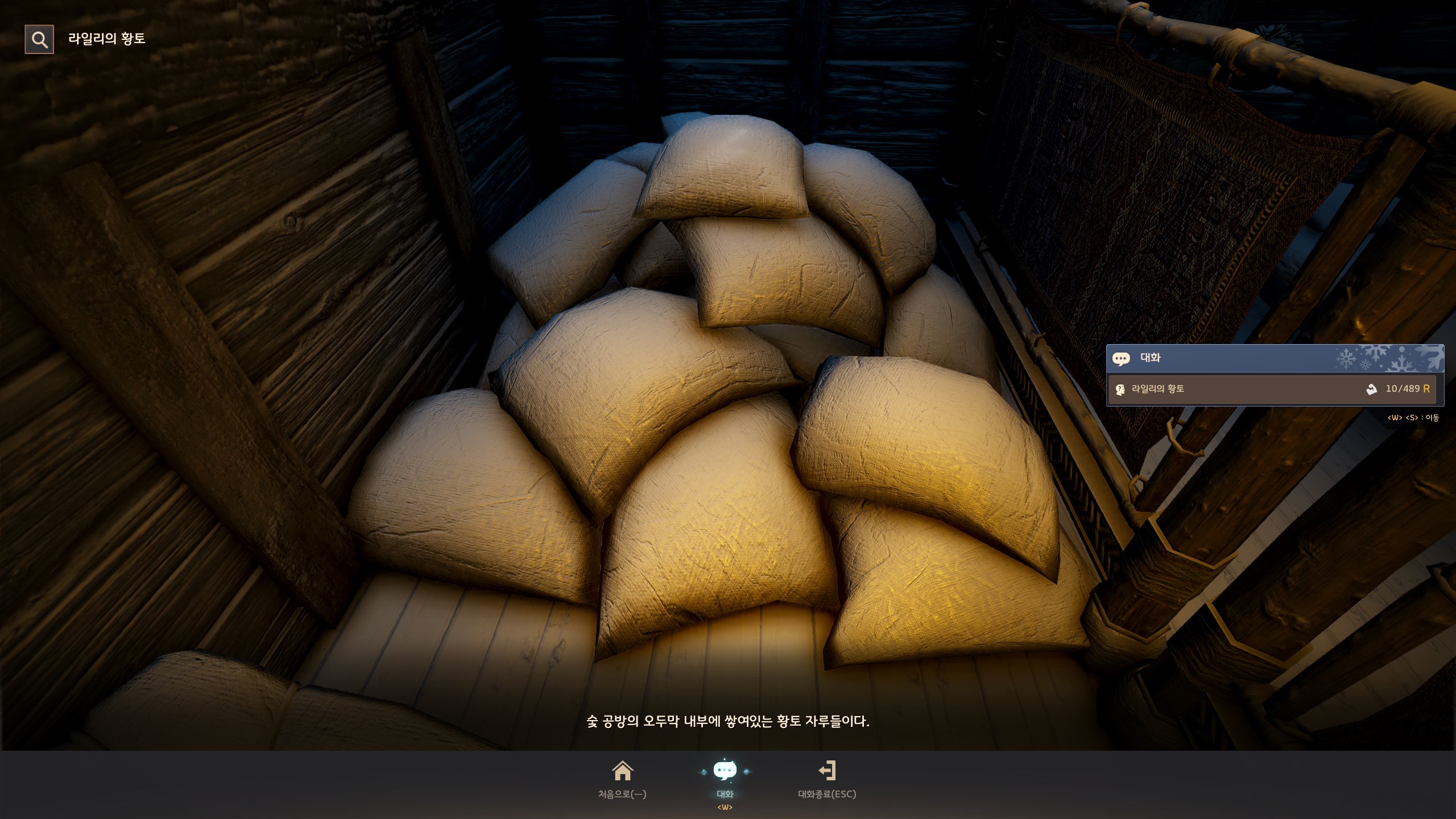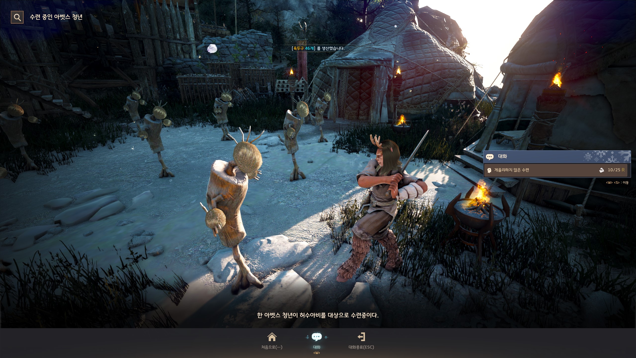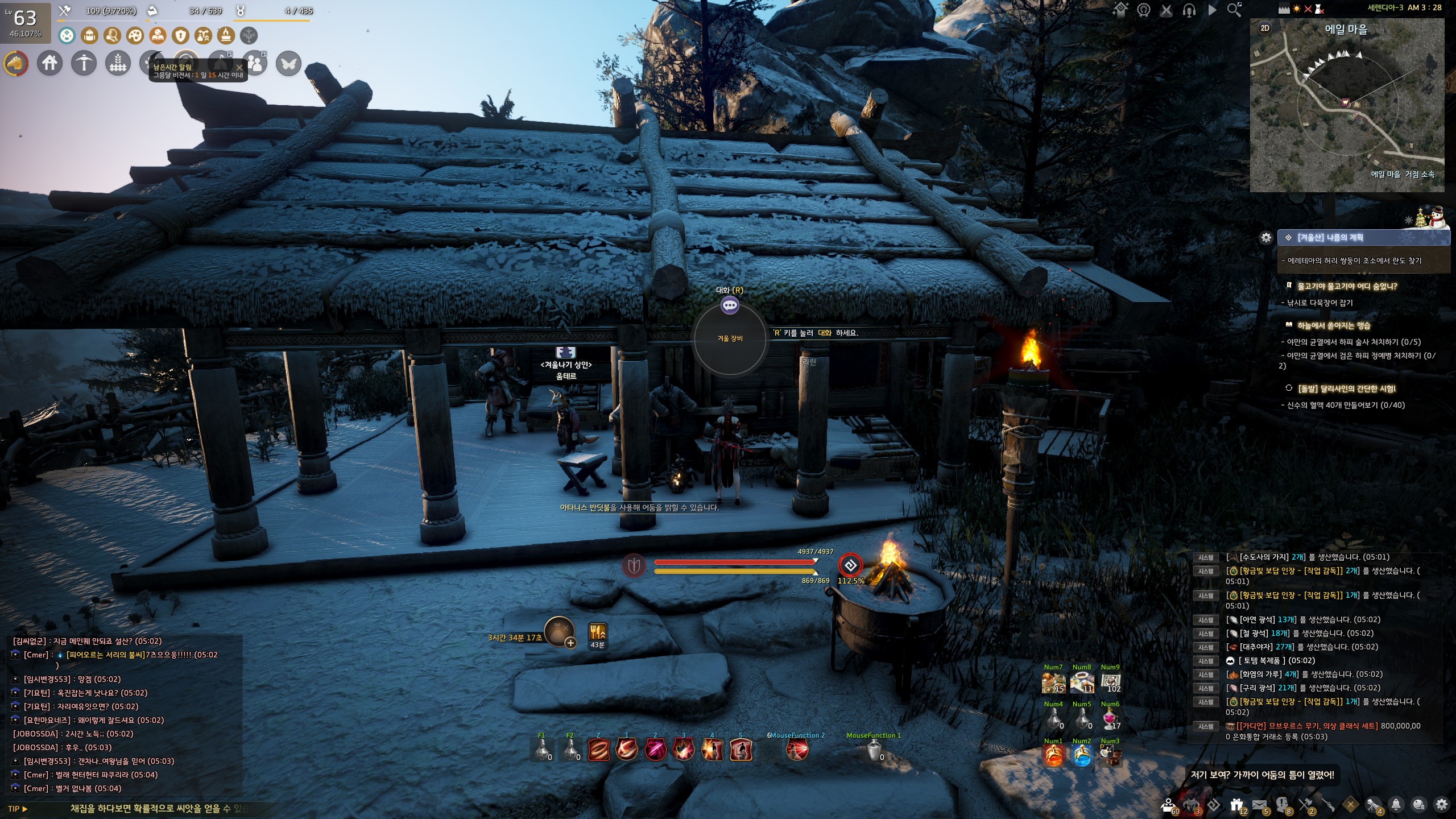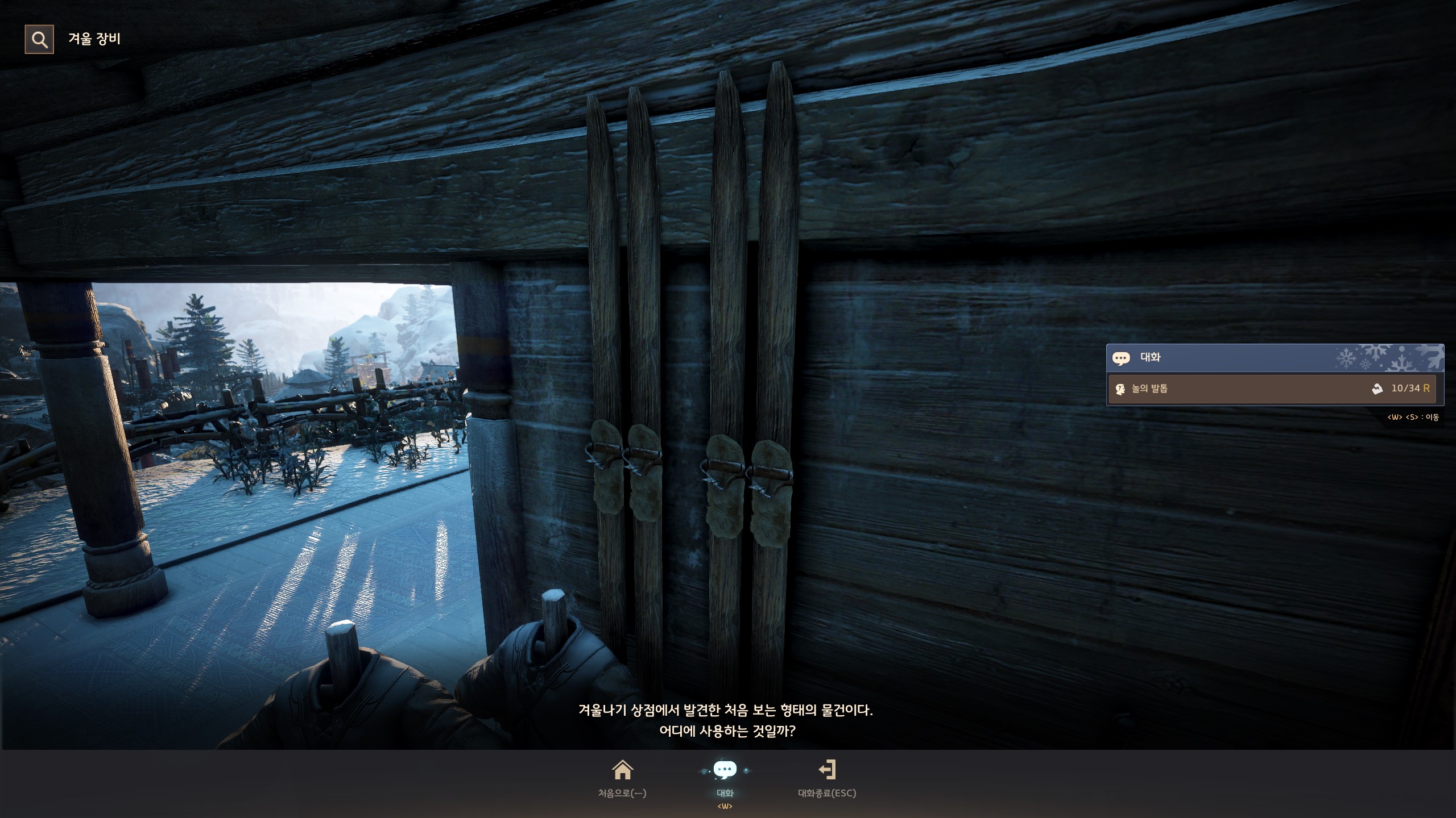 → 에일 마을 <겨울나기 상인> 움테르 옆에서 지식을 획득할 수 있어요. 지식 획득 시 기운 10이 소모돼요.