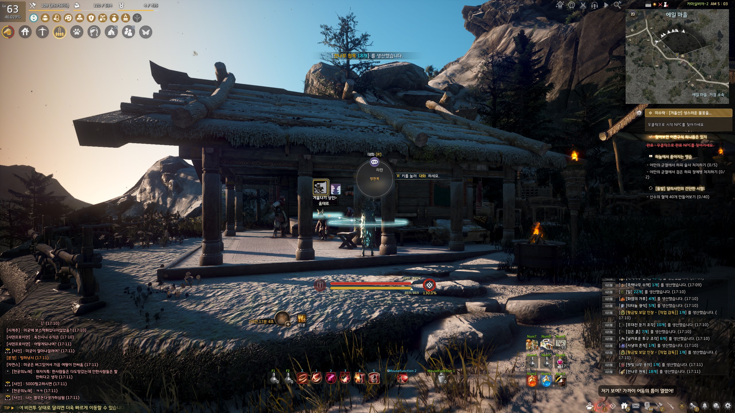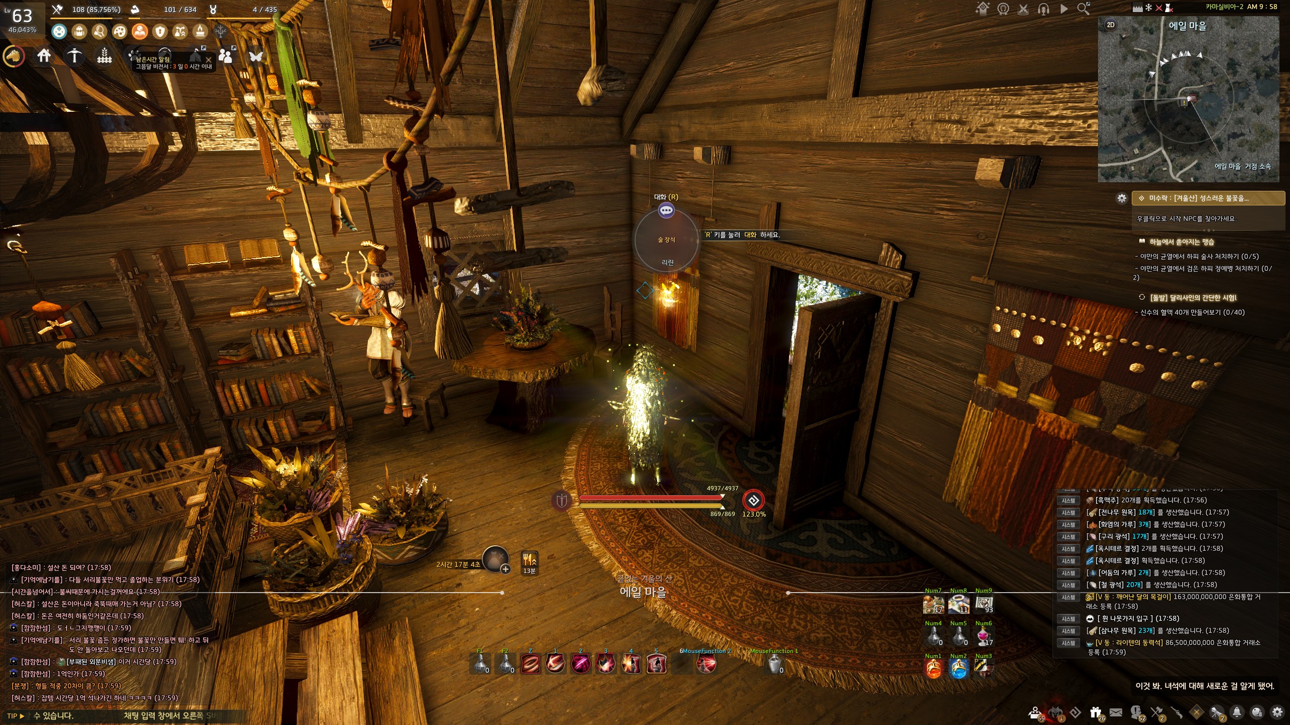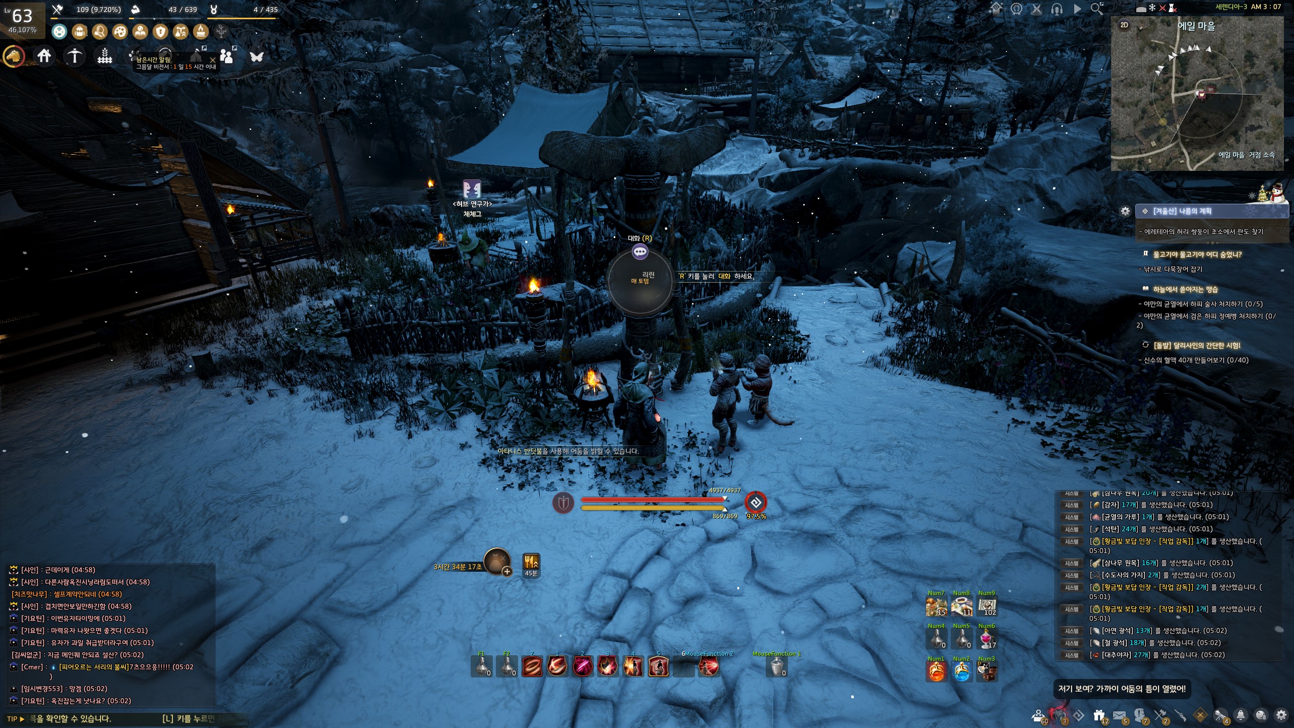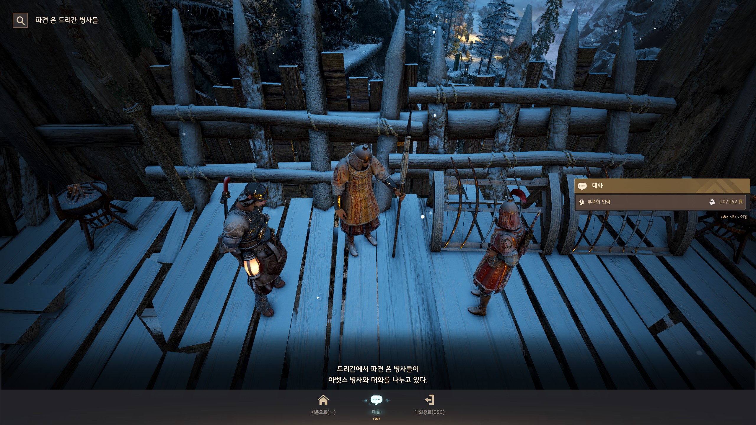→ 에일 마을 <겨울나기 상인> 움테르 옆에서 지식을 획득할 수 있어요. 지식 획득 시 기운 10이 소모돼요.