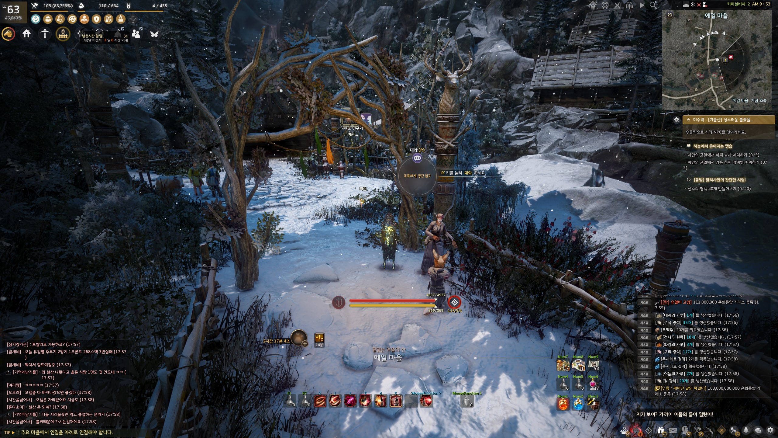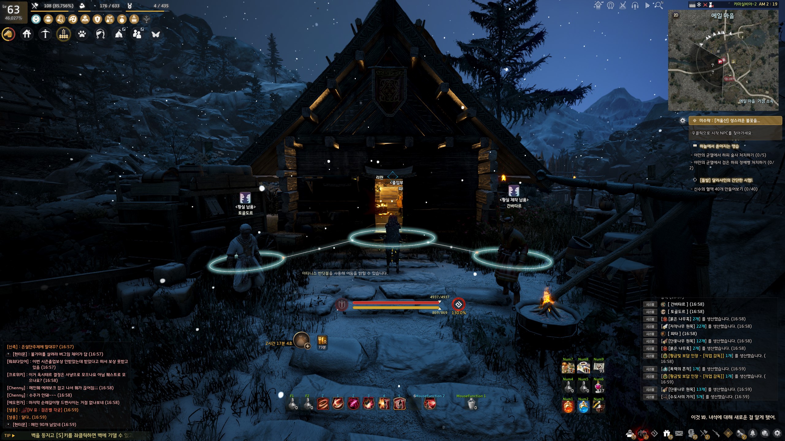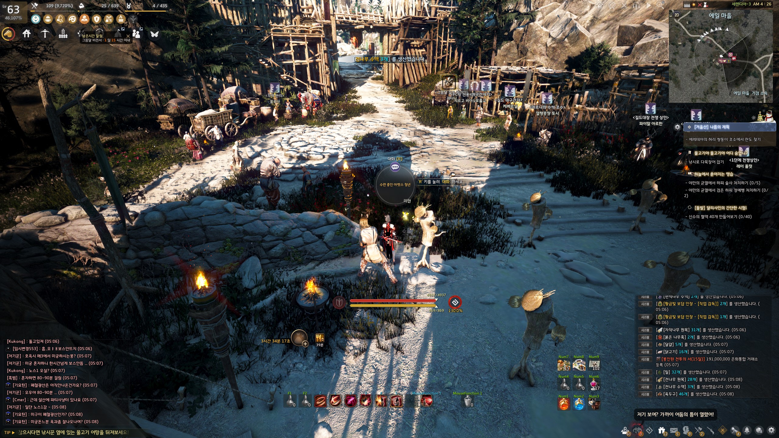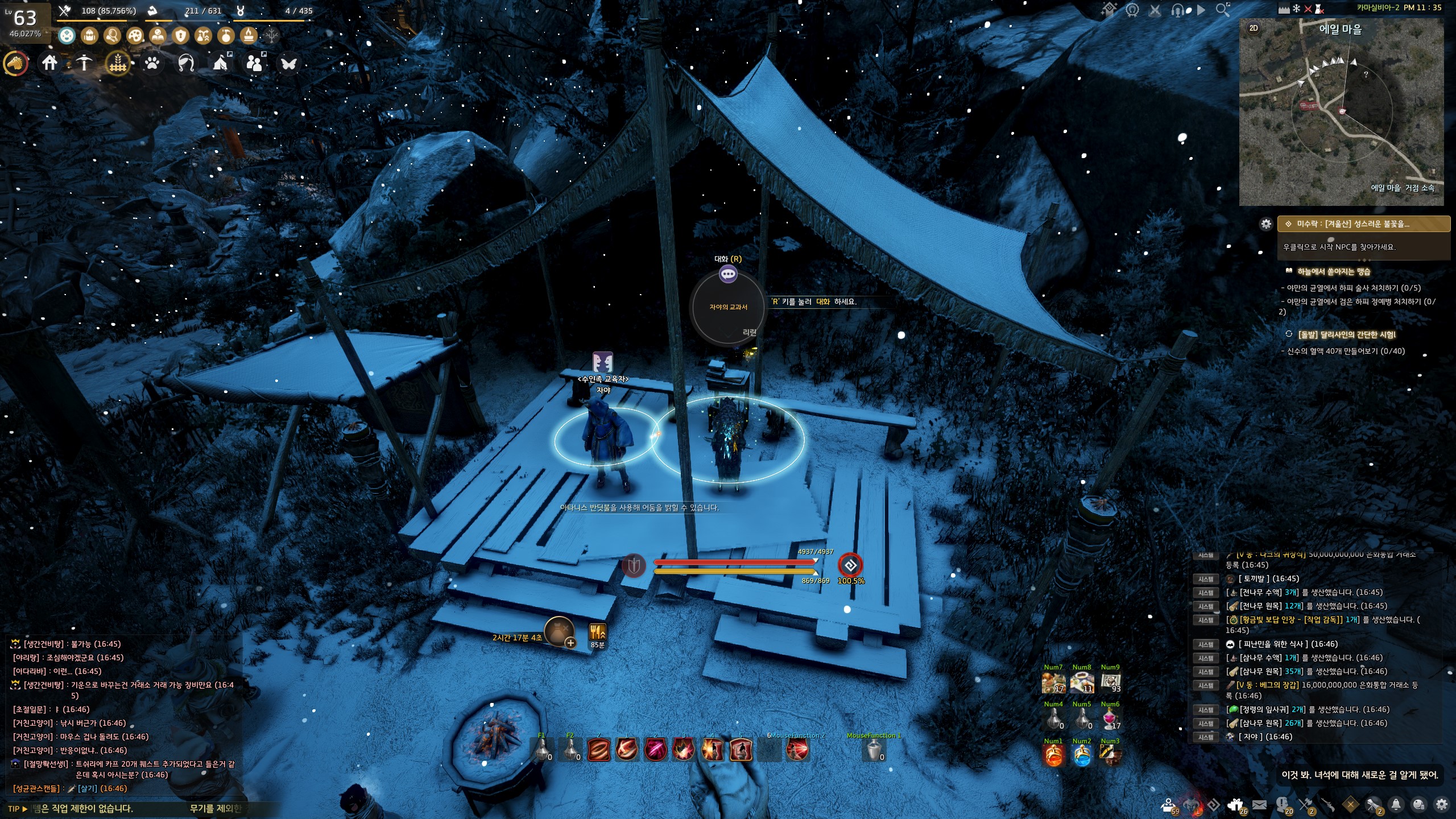 → 에일 마을 <겨울나기 상인> 움테르 옆에서 지식을 획득할 수 있어요. 지식 획득 시 기운 10이 소모돼요.