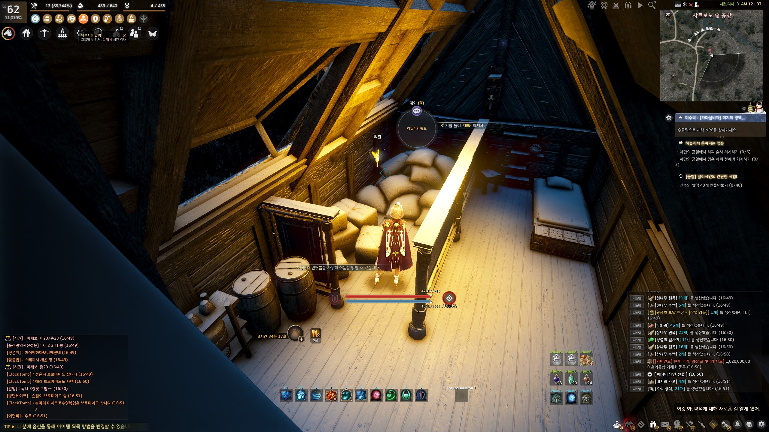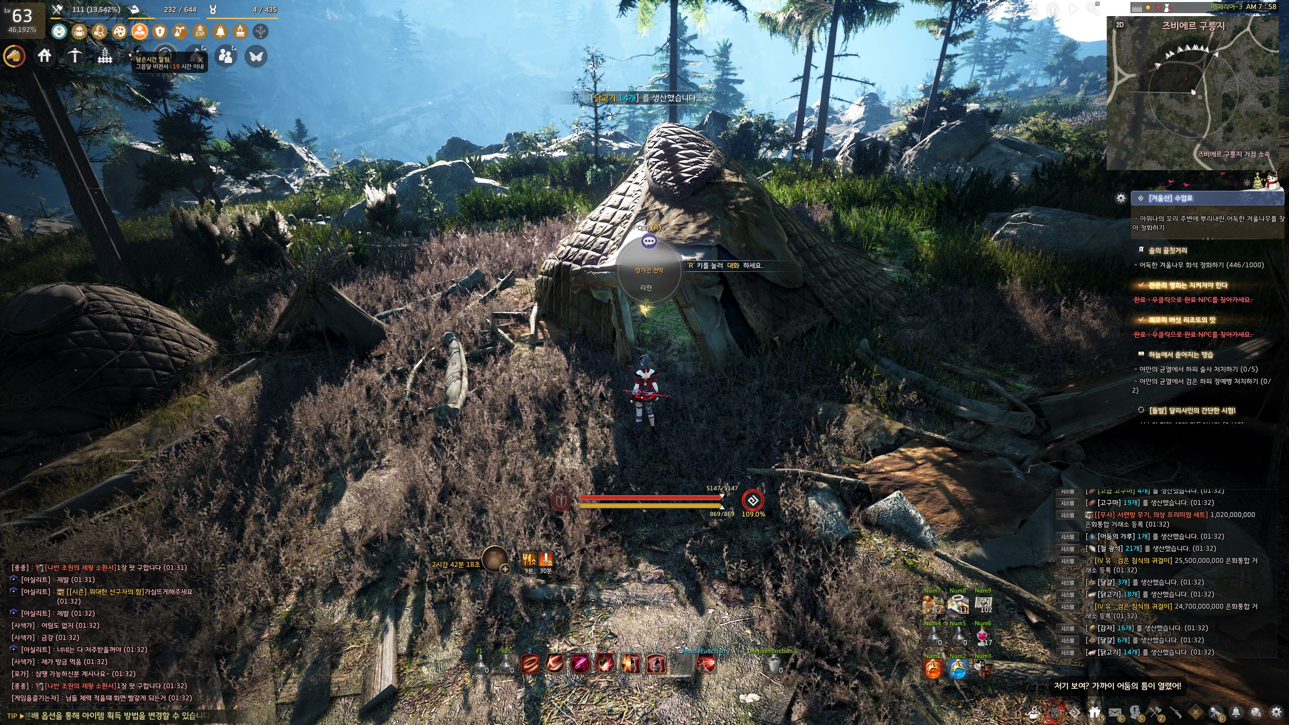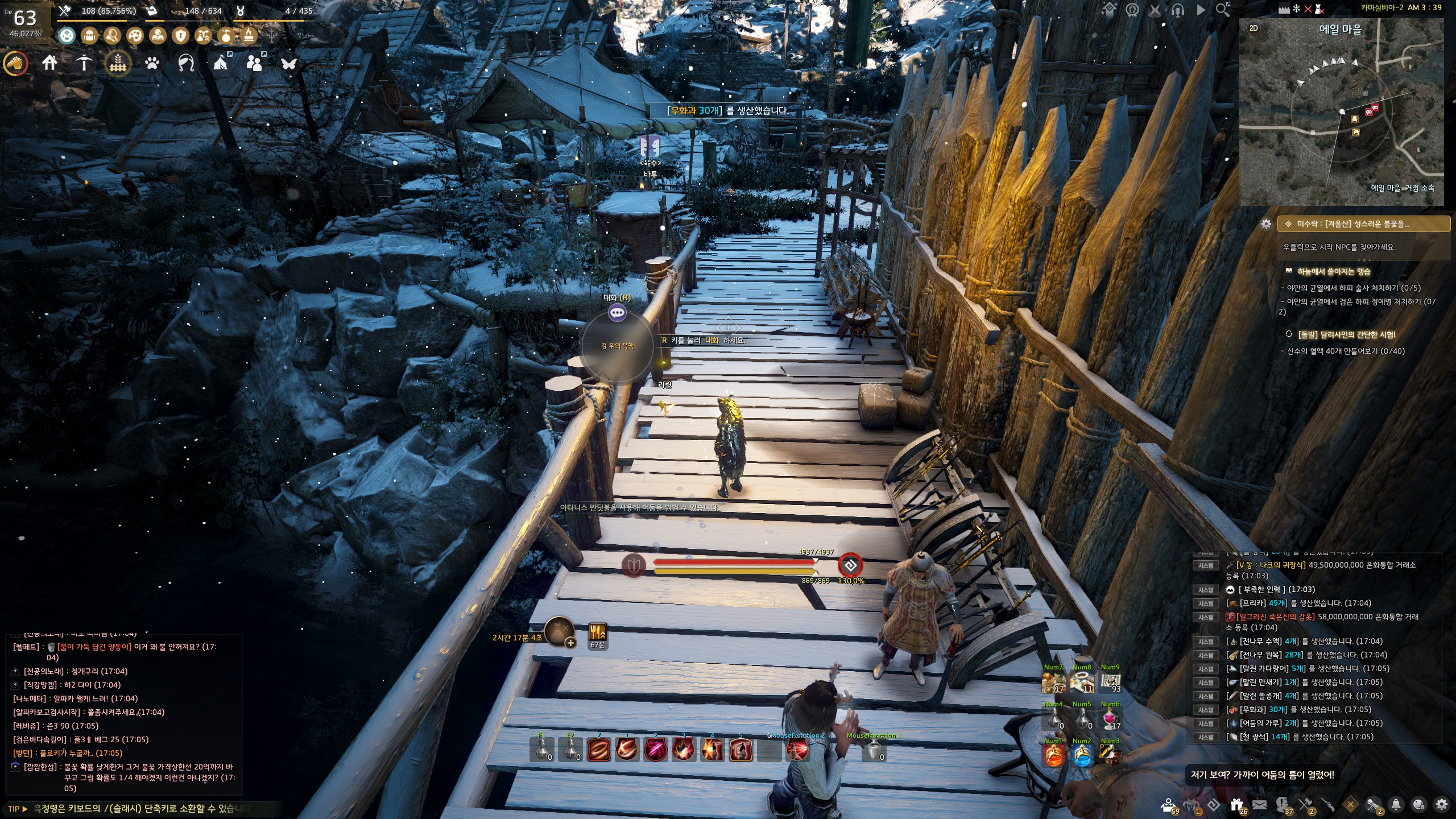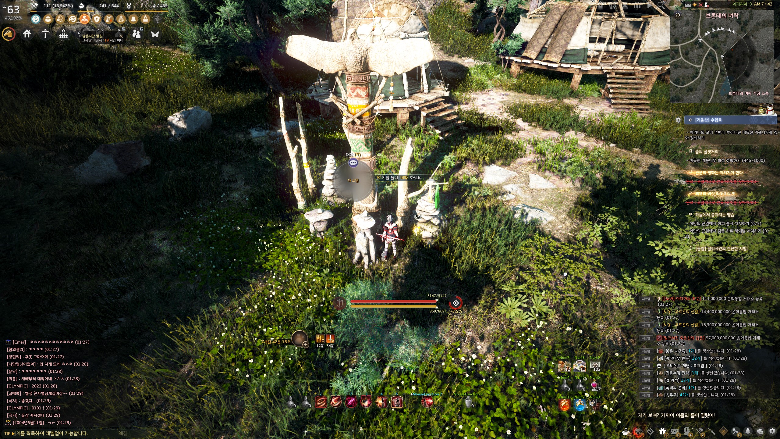→ 에일 마을 <겨울나기 상인> 움테르 옆에서 지식을 획득할 수 있어요. 지식 획득 시 기운 10이 소모돼요.