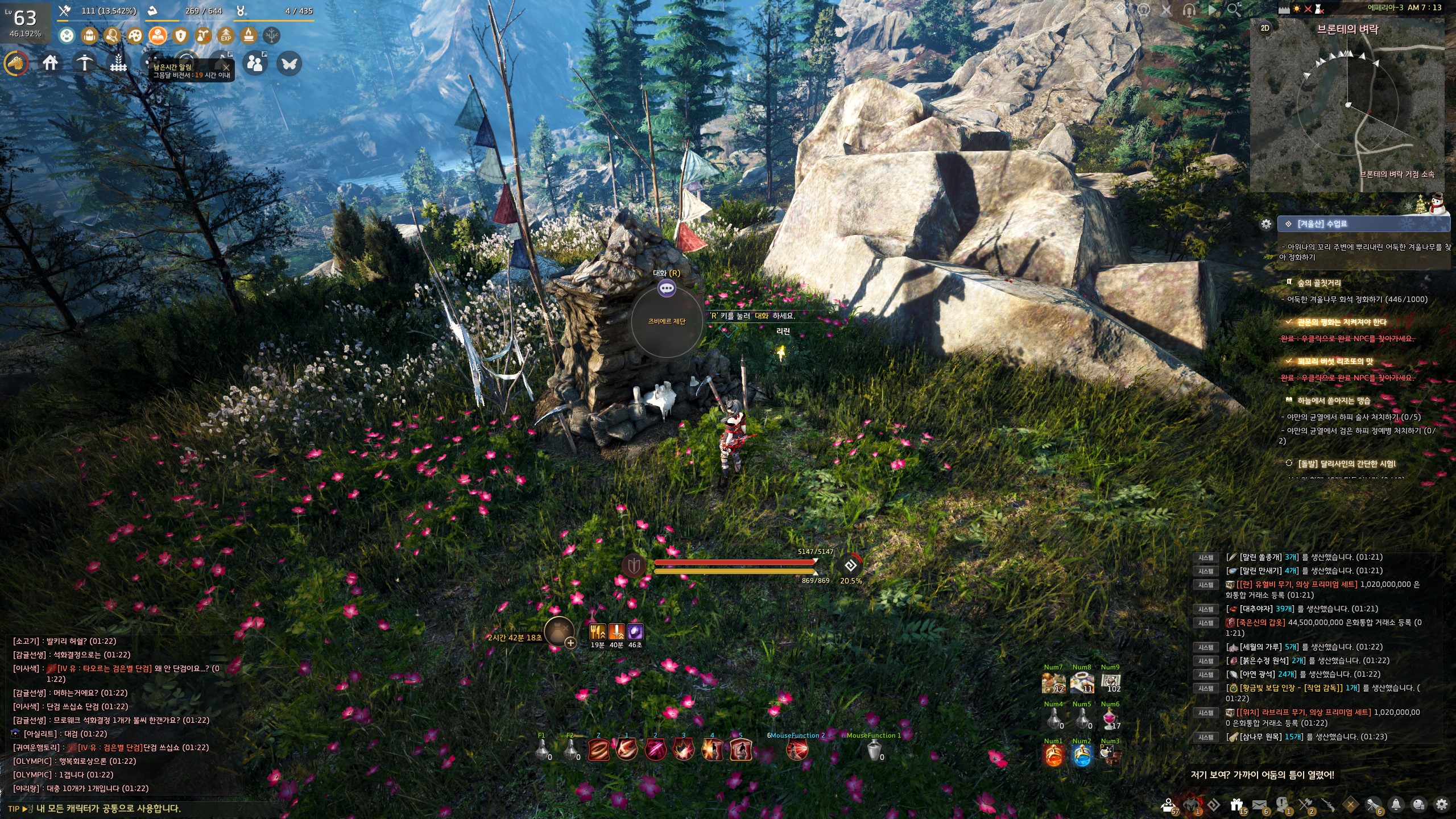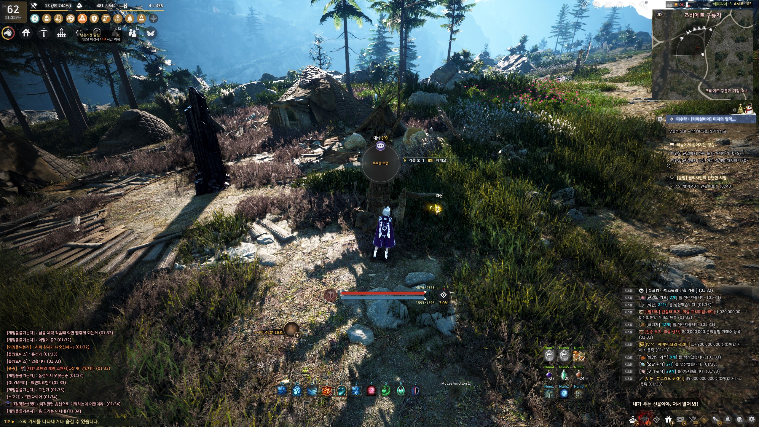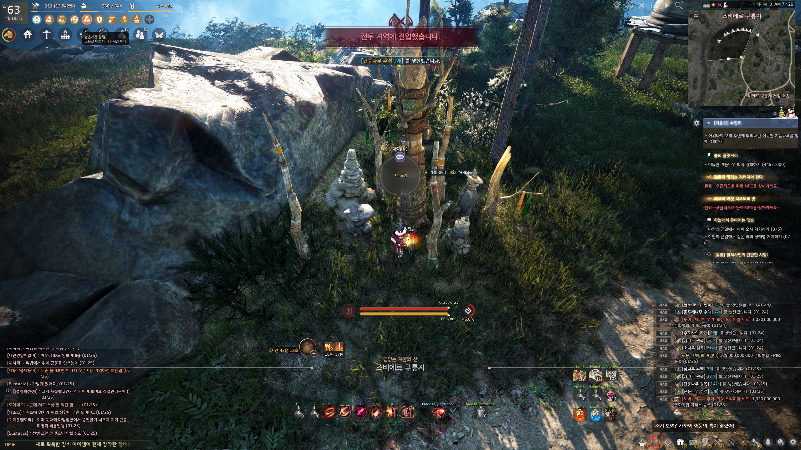 → 즈비에르 구릉지 겨울나무 화석 사냥터 표시 바로 위 11시 방향으로 가면 지식을 획득할 수 있어요. 지식 획득 시 기운 10이 소모돼요.