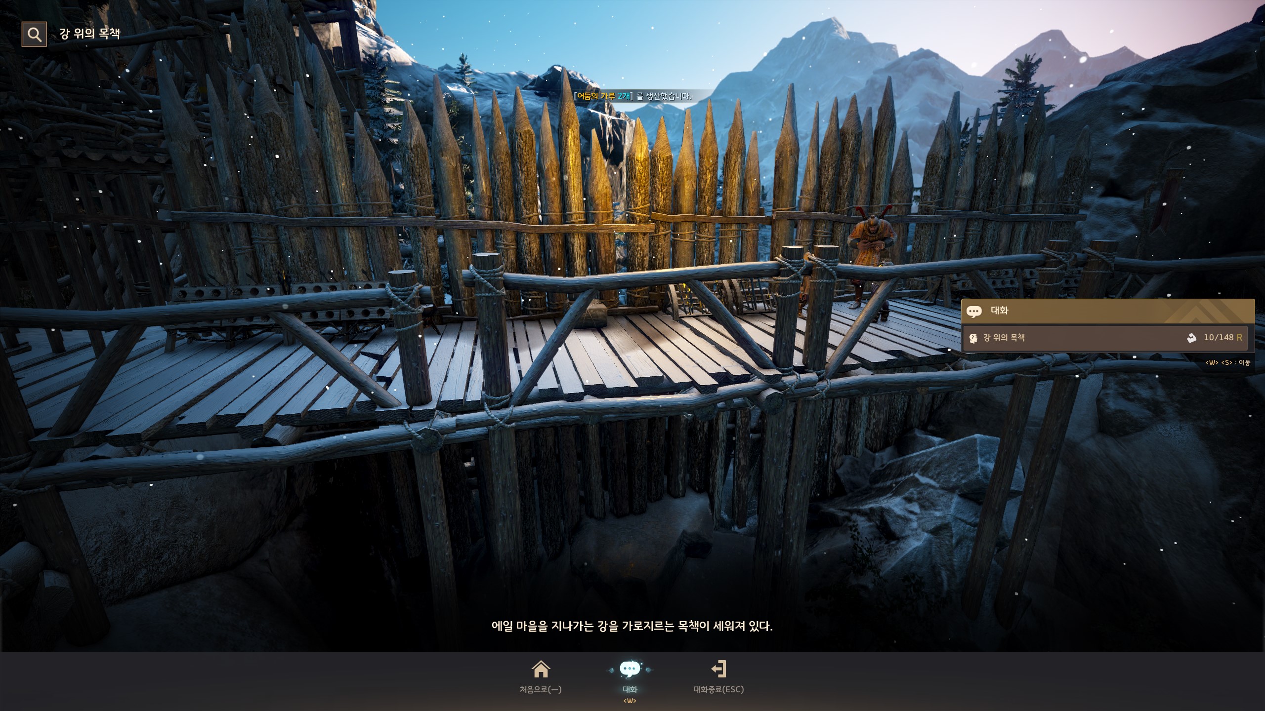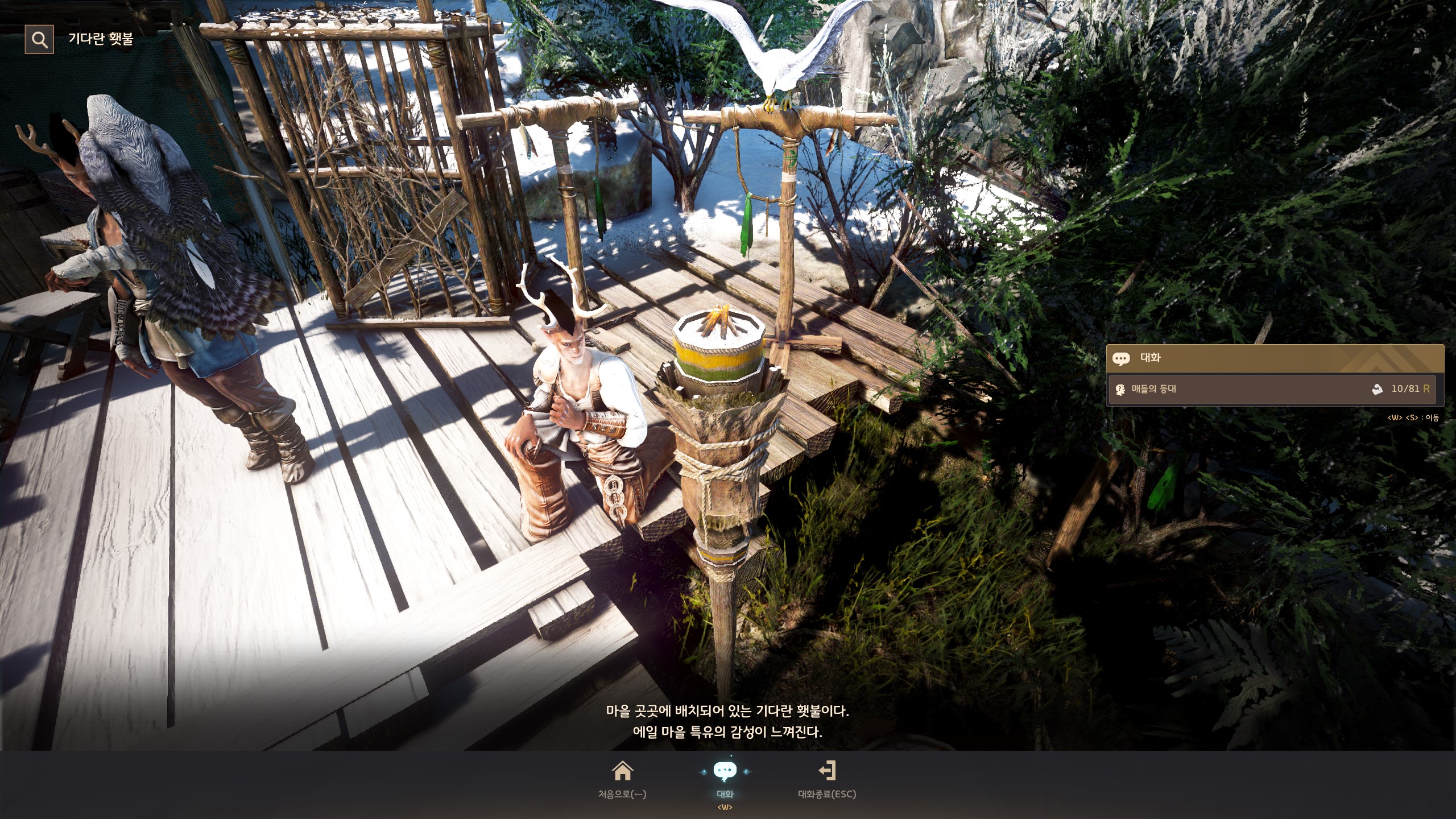 → 에일 마을 <마구간지기> 자르갈 쪽 입구 목책 위에서 지식을 획득할 수 있어요. 지식 획득 시 기운 10이 소모돼요.