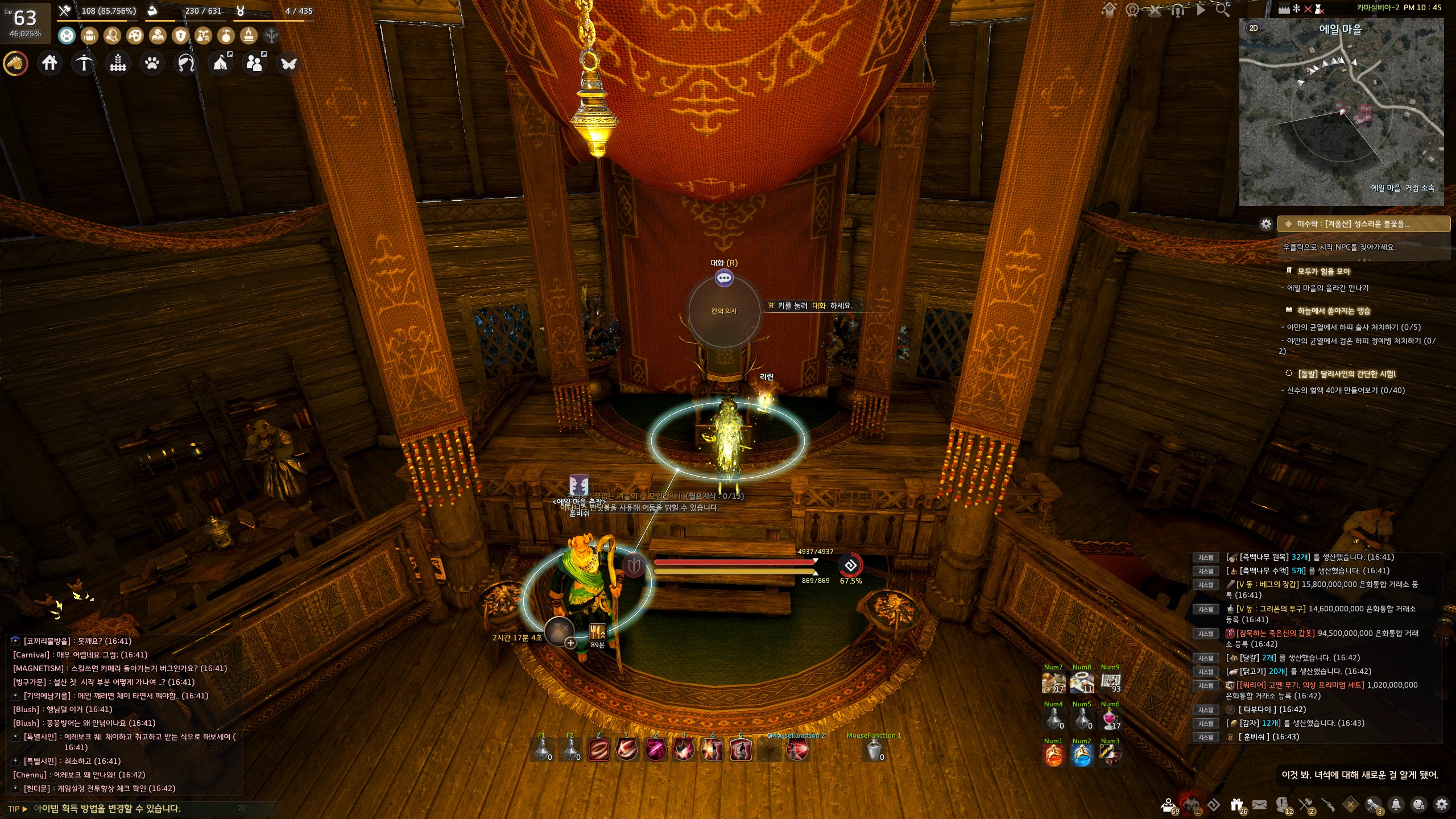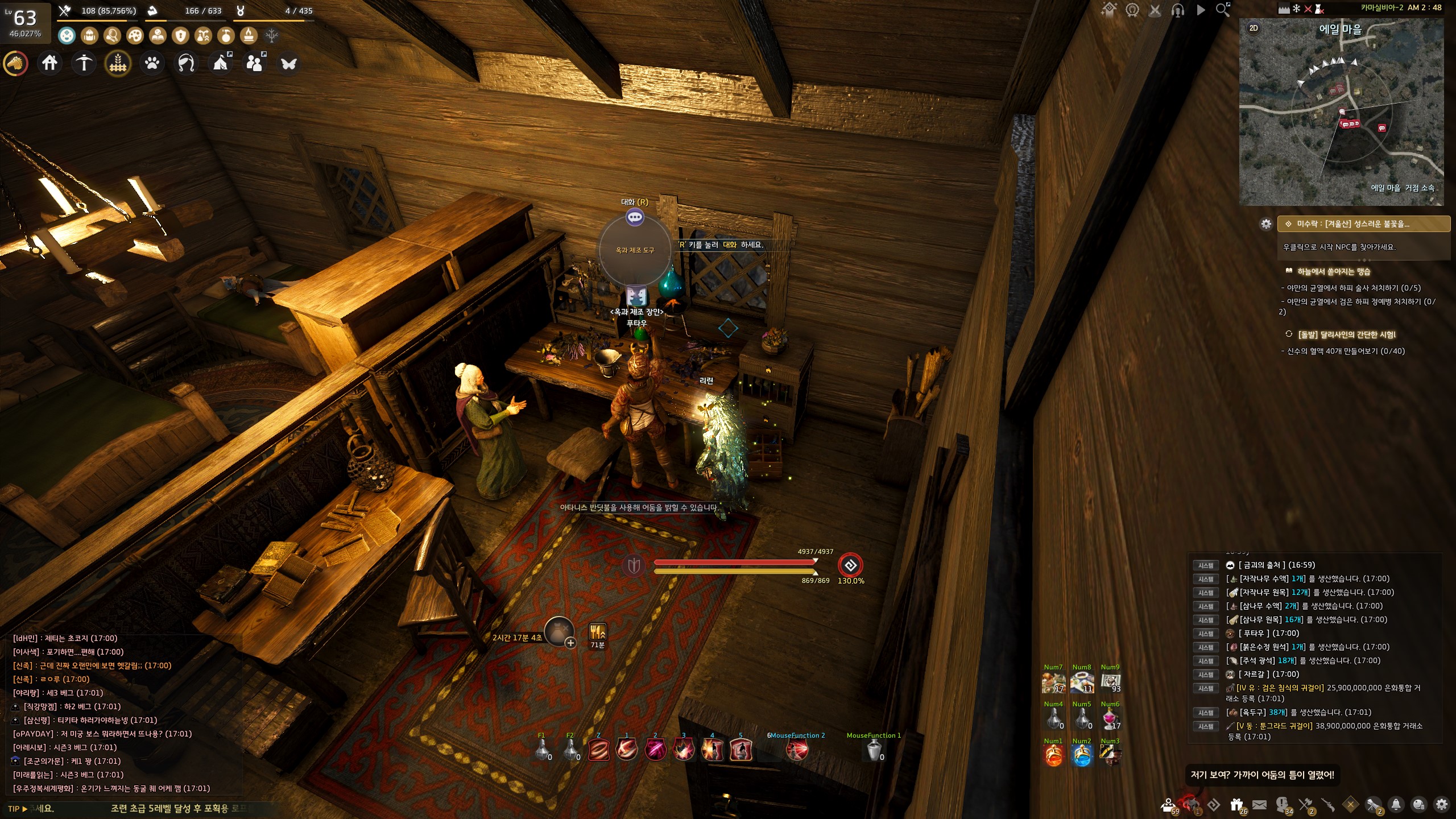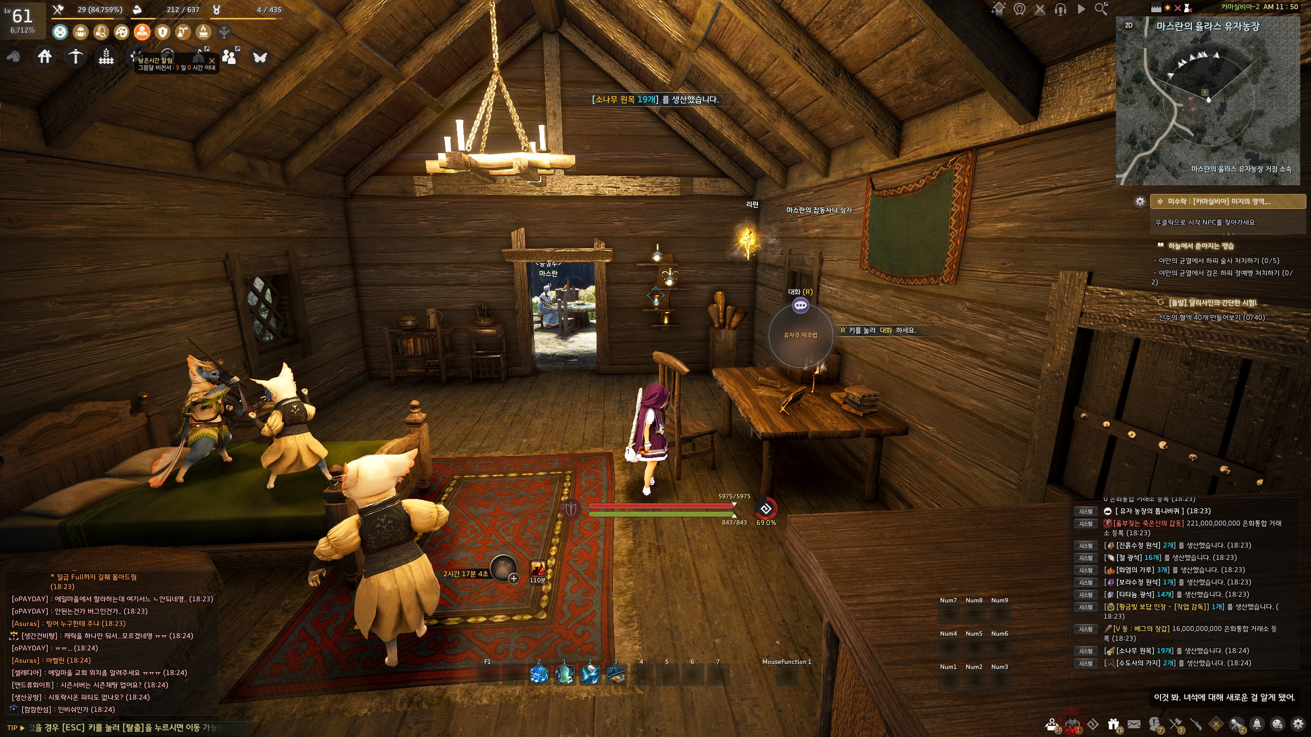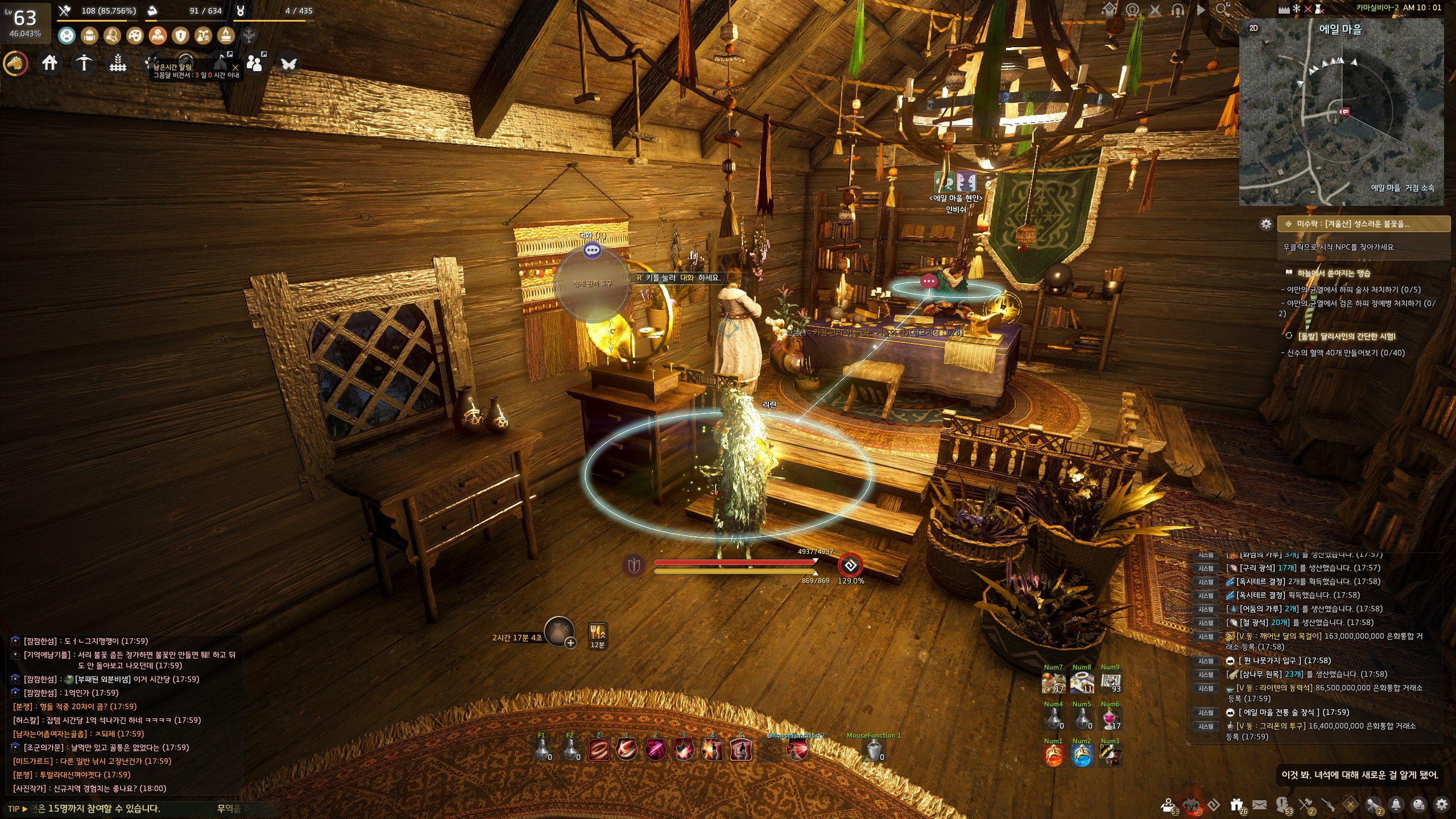 → 에일 마을 <에일 마을 촌장> 훈비쉬가 있는 건물 안 의자에서 지식을 획득할 수 있어요. 지식 획득 시 기운 10이 소모돼요.