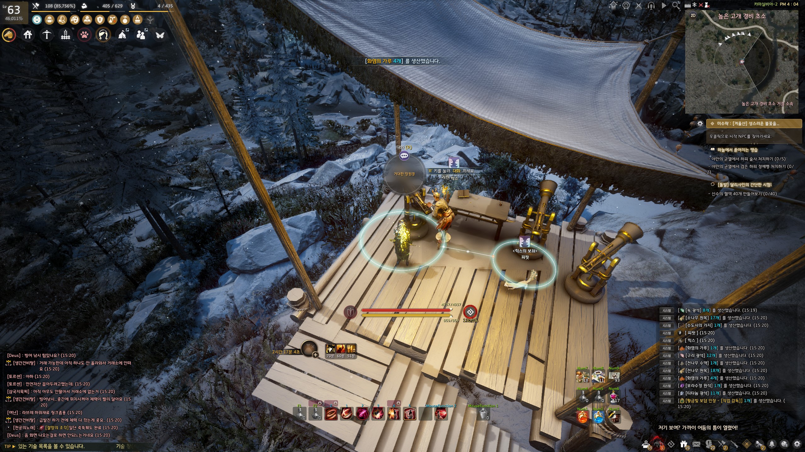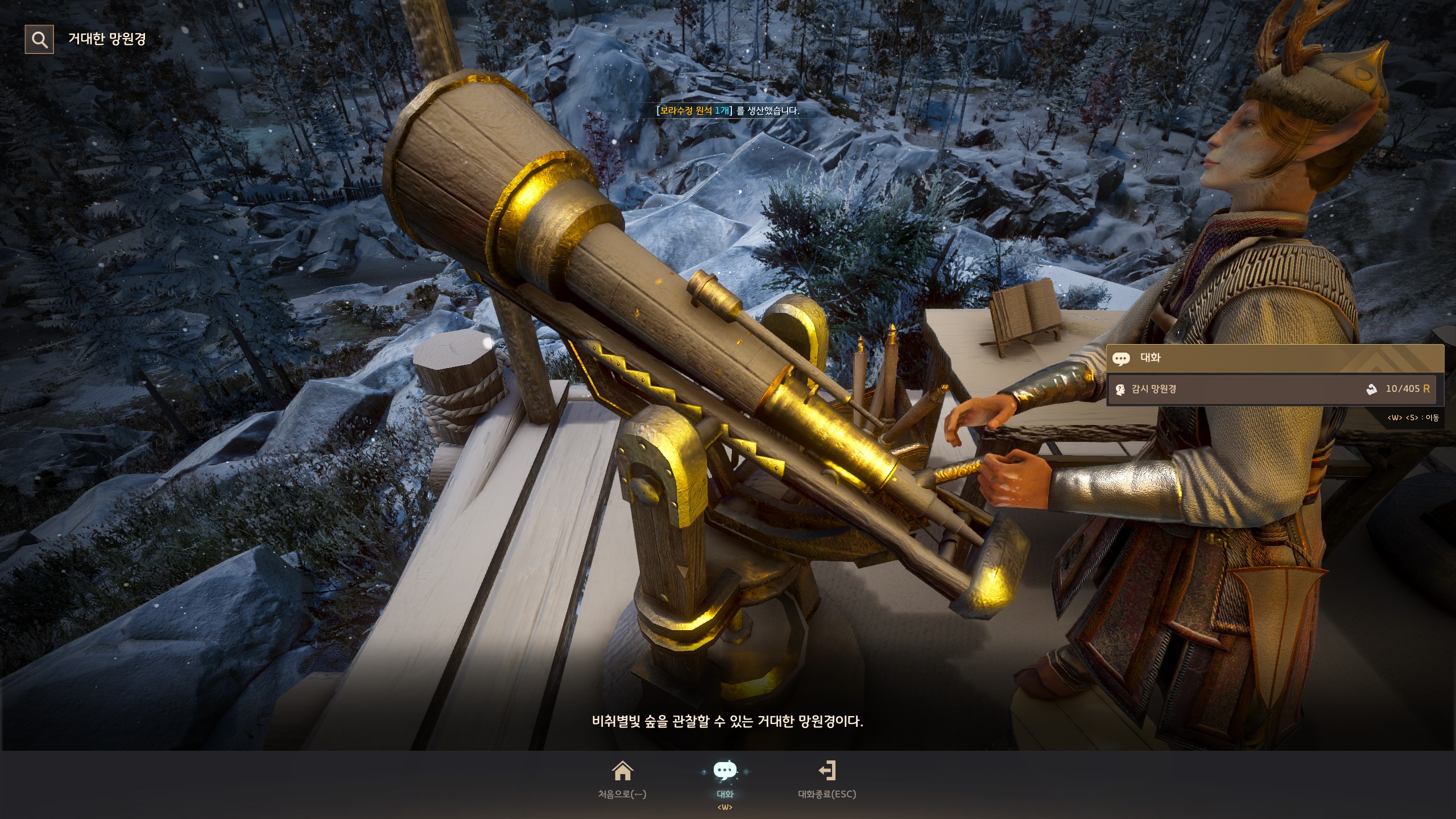 → 높은 고개 경비 초소 <탐험 거점 관리> 힉스 앞에서 지식을 획득할 수 있어요. 지식 획득 시 기운 10이 소모돼요.