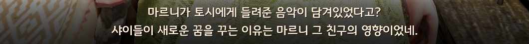 마르니스 악기를 모두 완성하여 지식 카테고리를 채우면 칭호 <마르니의 날개>를 획득할 수 있고, 칭호 <플로케스트라의 날개>와 칭호 <마르니의 날개>를 모두 가지고 있으면 흑정령을 통해 칭호 <뮤지션>을 획득할 수 있는 의뢰를 수주할 수 있어요.