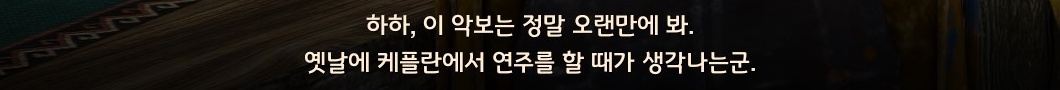 "전에 부탁했던 새로운 악기 말이야. 내가 또 다른 걸작품을 만들어냈지 뭐야! 얼른 날 찾아오도록 해. 참, 빈손으로 오면 안 되는 거 알지?"