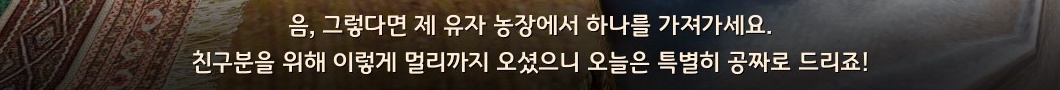 해당 연속의뢰는 에일 마을 <생선상인> 토드로에게서 진행할 수 있어요. 그리고 의뢰 완료 후에는 에일 마을의 <생선상인> 토드로에게서 친밀도 400을 소모하고 구매할 수 있어요.