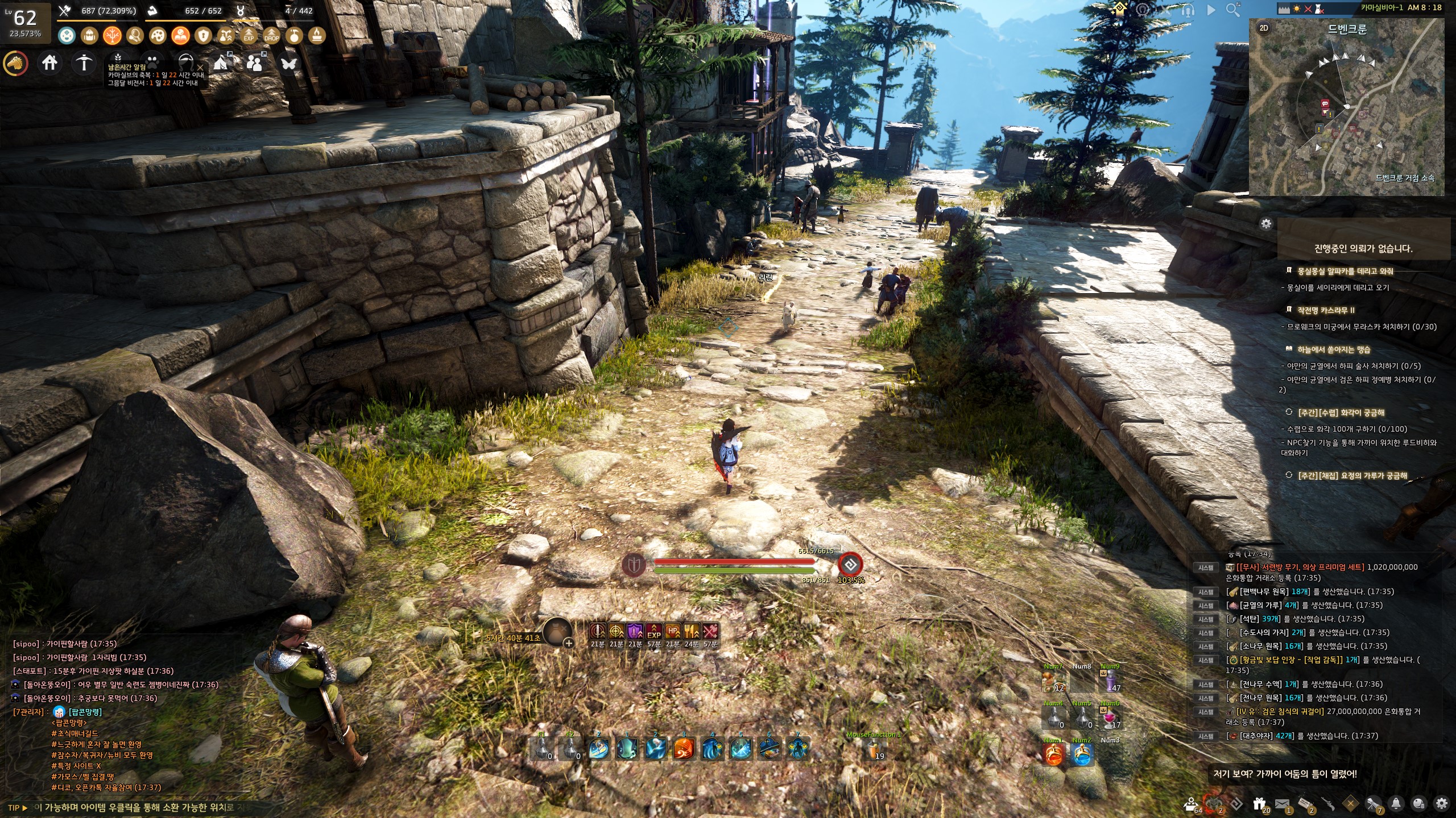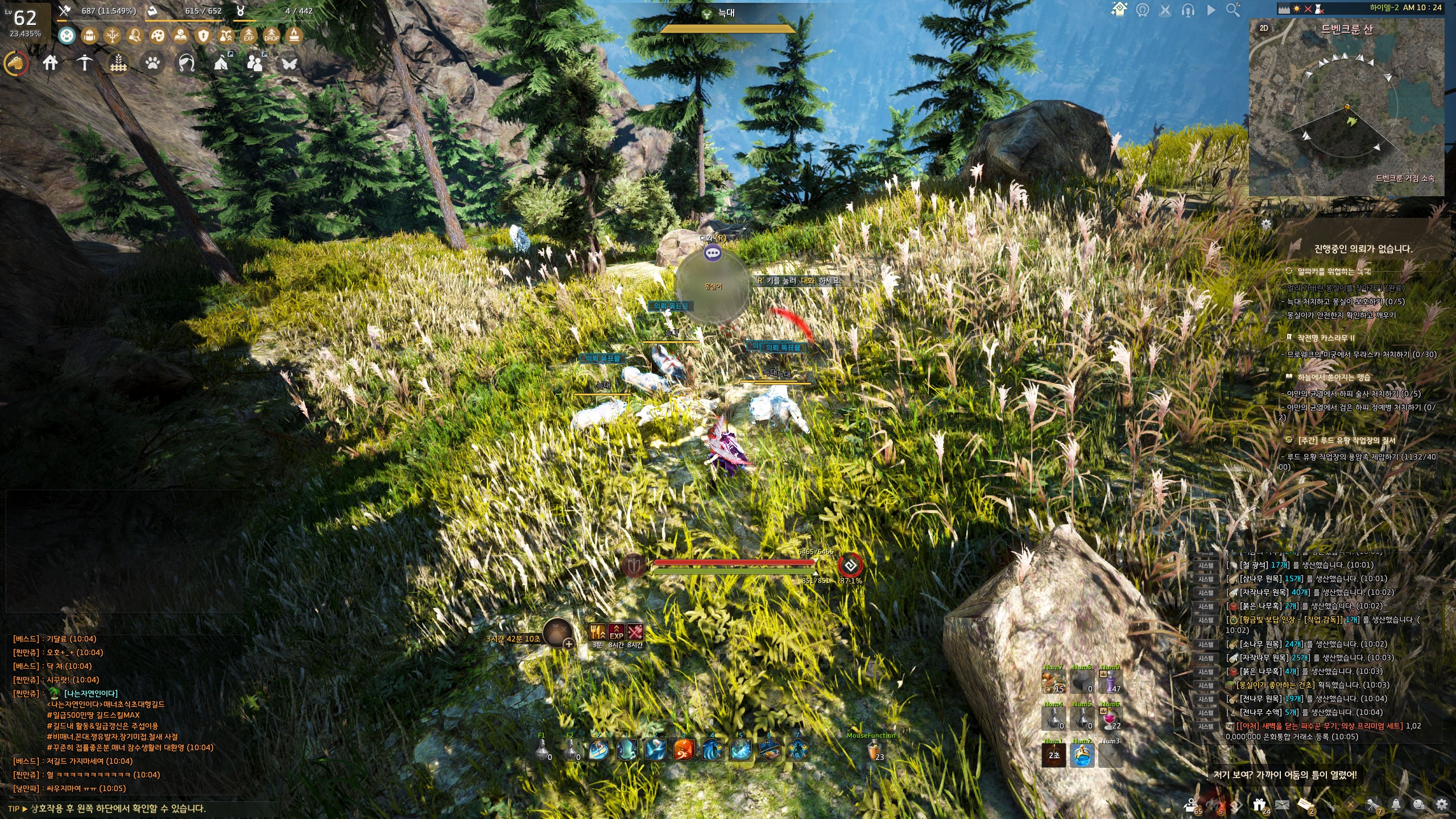 의뢰를 진행하는 과정에 쉬운 전투가 포함되어 있으니 사냥할 수 있는 상태로 진행해주세요.