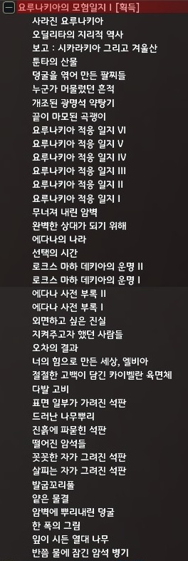 여기까지 하셨으면 요루나키아의 모험일지 I 지식은 전부 획득해요. 글을 참고하셔서 수월하게 하셨으면 좋겠어요.