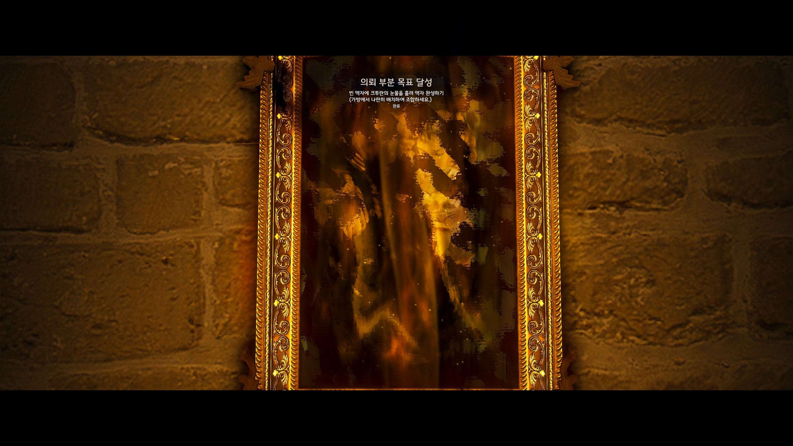 - 빈 액자에 크투란의 눈물을 흘려 액자 완성하기 (가방에서 나란히 배치하여 조합하세요.)