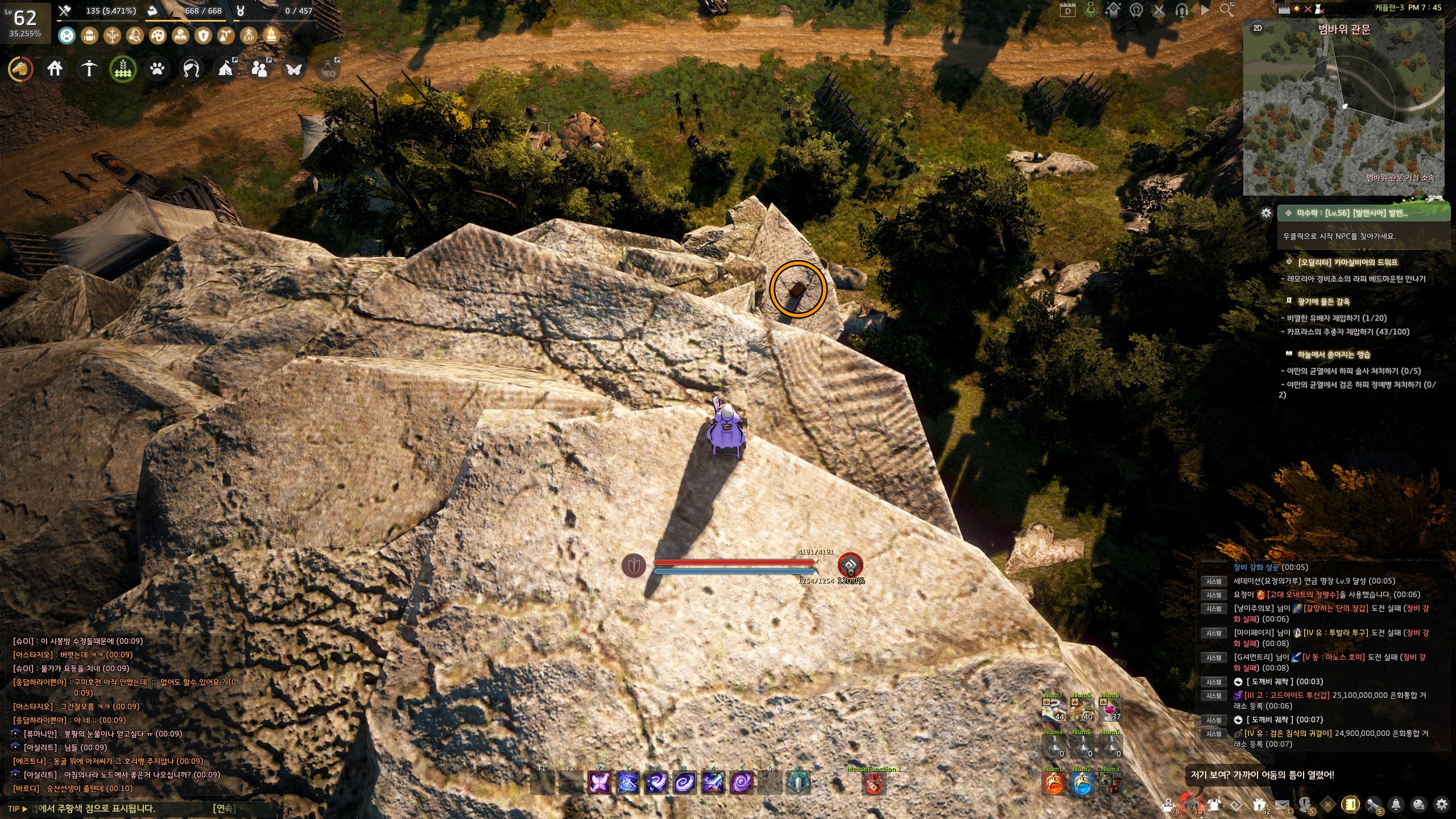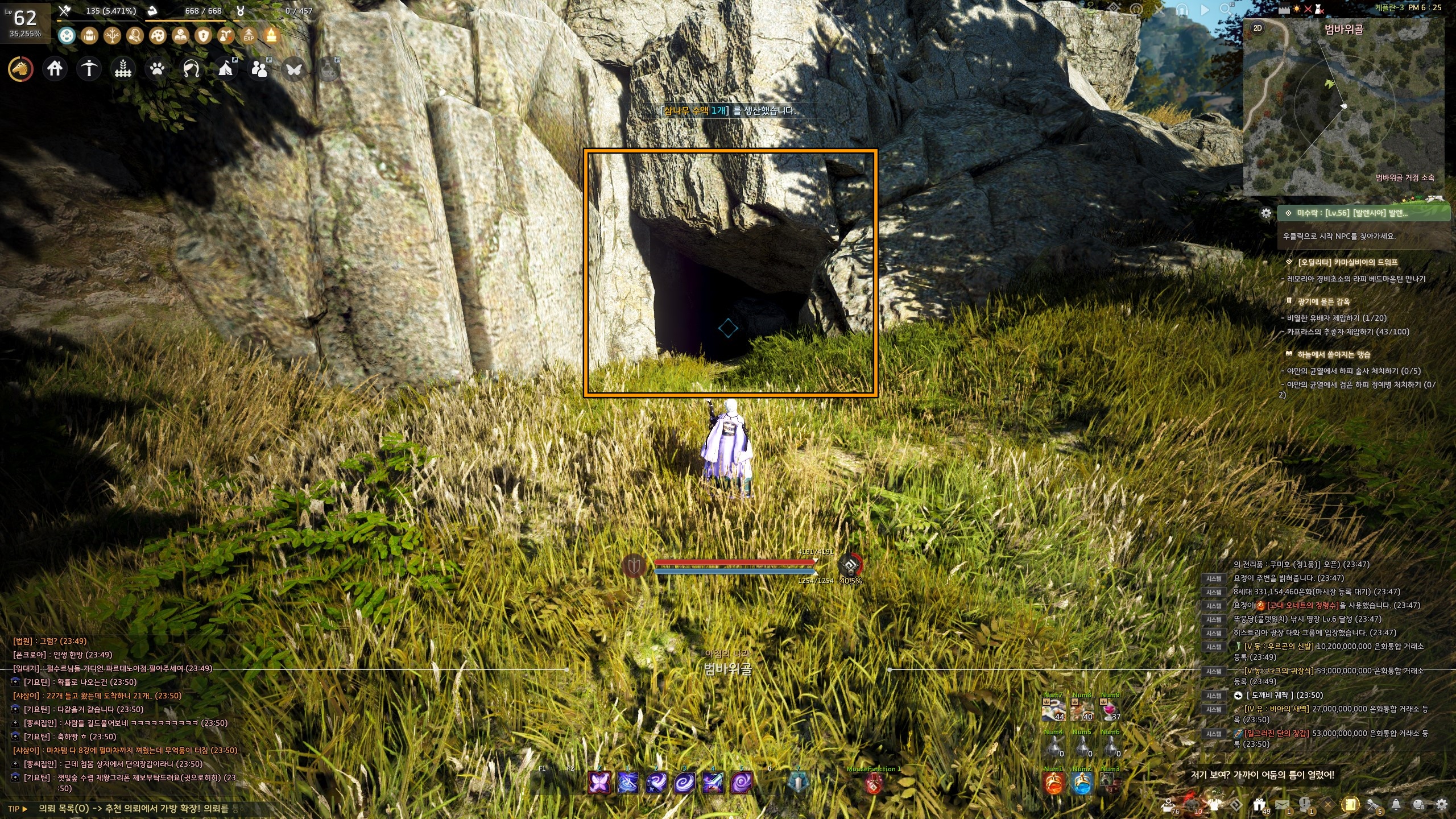 → 범바위골 저격 수렵 구역의 가장 높은 곳에 있는 호침석 지식 얻는 곳보다 낮은 바위 위