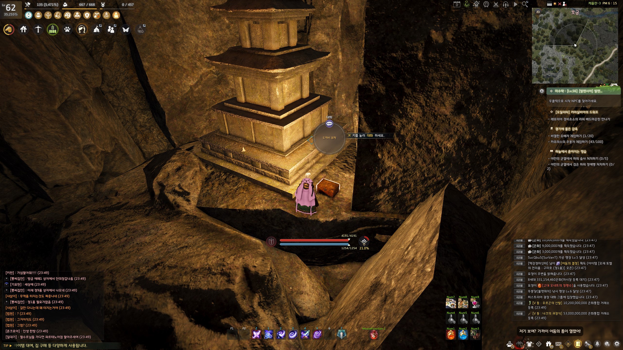 → 4번째 도깨비 궤짝 IV 6번 지식을 획득하고 1시 방향으로 강을 건너가 보면 동굴이 있어요.