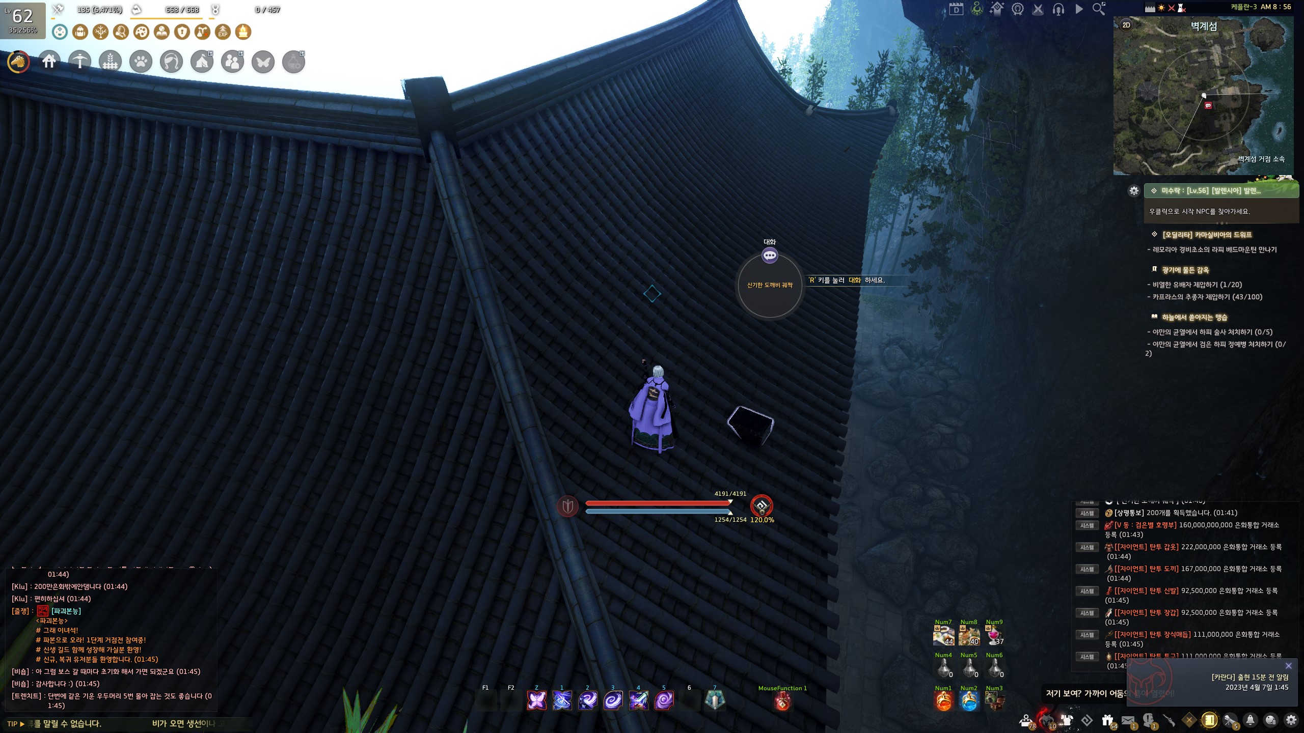 → 벽계섬 유성이 있는 건물 지붕 위에 있어요. 상평통보 200개 획득