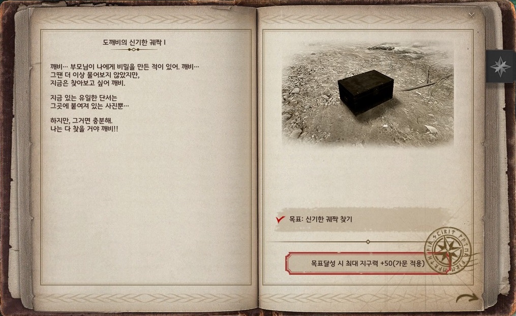 어느 모험가의 낯선 풍경 6권은 신기한 도깨비 궤짝을 5개 찾아야해요. 도깨비의 신비한 궤짝 지식은 총 10개지만 채울 수 있는 지식은 현재 5개인 것으로 보입니다.