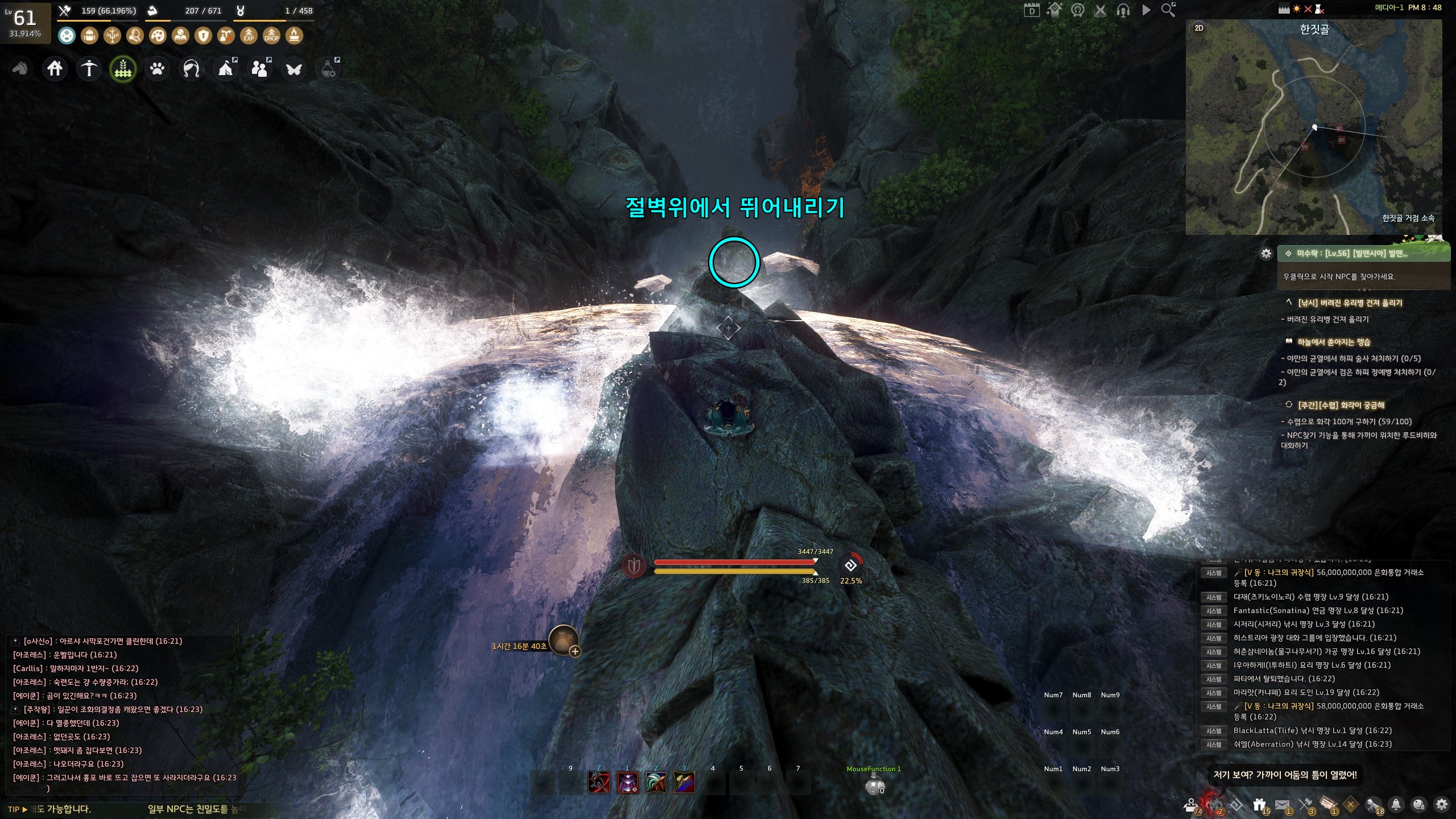 → 한짓골 대폭포 위에서 뛰어내려야 합니다.