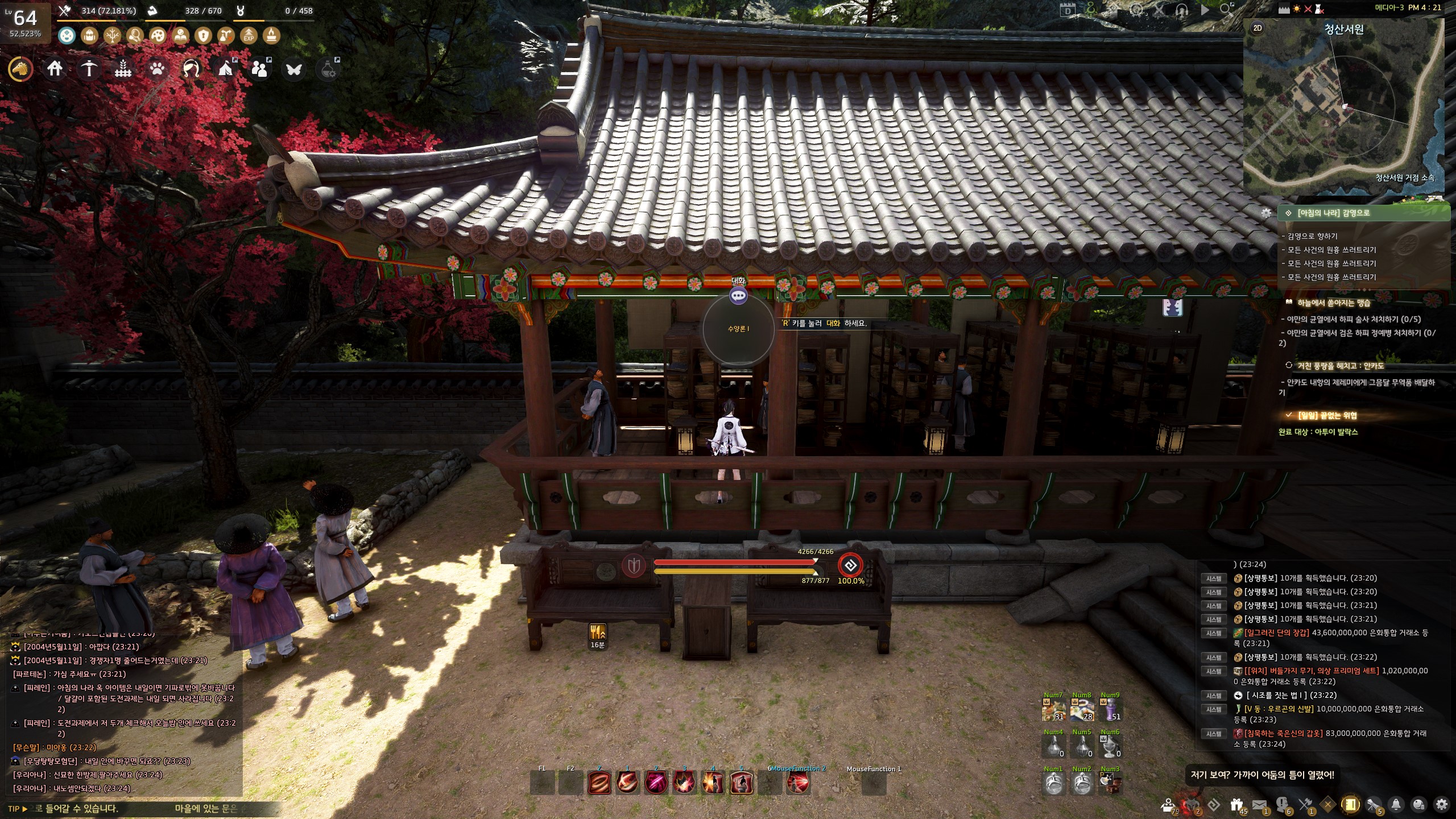→ 유식이 있는 건물에서 책상에 앉아있는 선비 NPC 앞