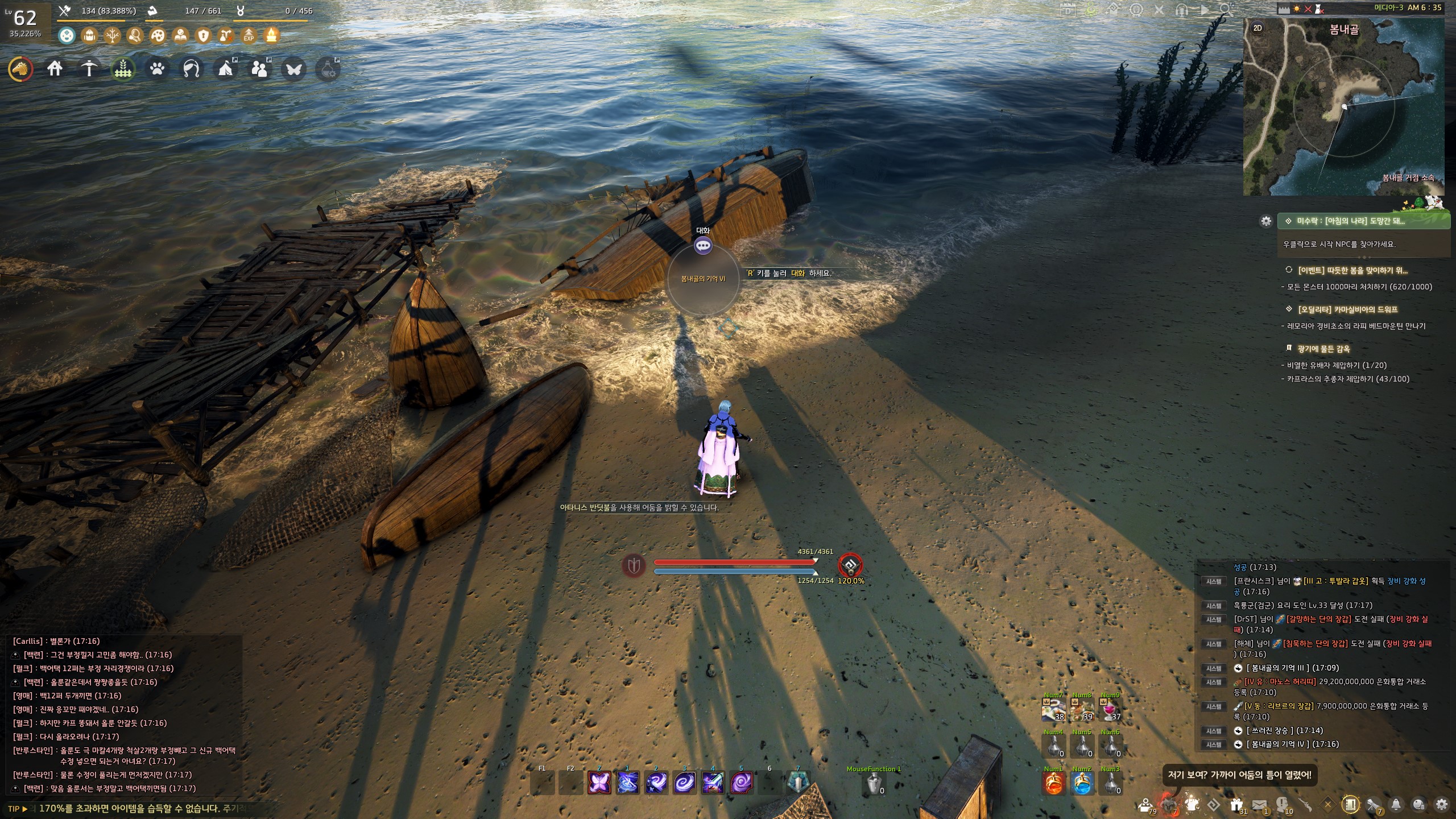 → 봄내골 거점 4시 방향 해안가에 쓰러진 나룻배
