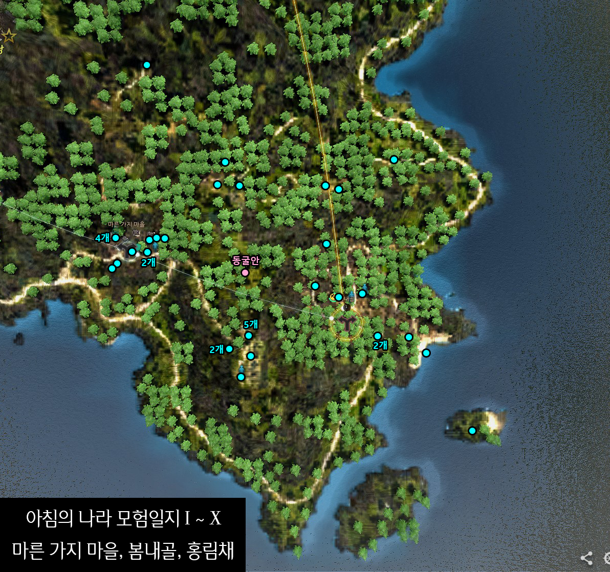 여기까지 하셨다면 마른 가지 마을, 봄내골, 홍림채 지식은 완료입니다.