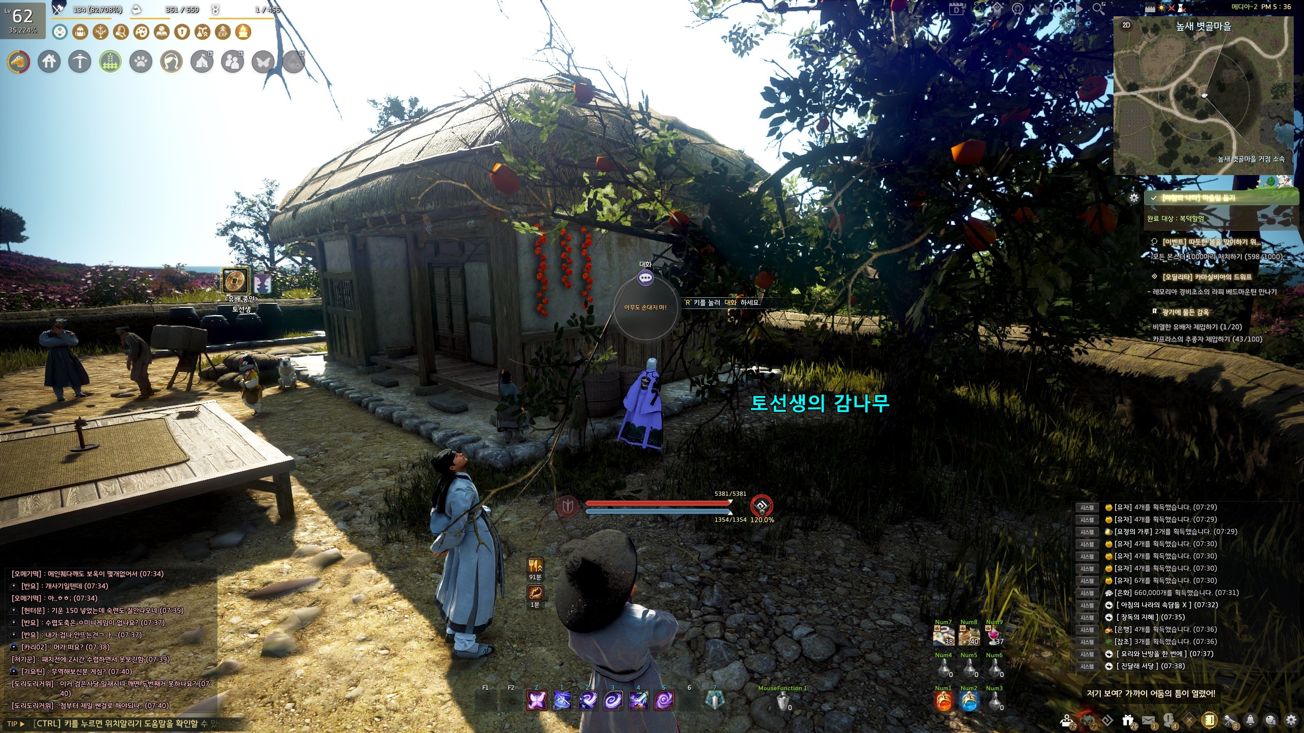 → <유배중인> 토선생의 집 오른쪽에 걸린 곶감. 오른쪽의 감나무에서 지식을 획득할 수 있어요.