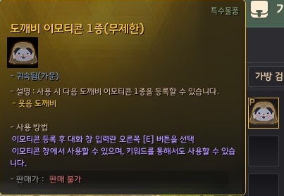 우클릭으로 사용하면 도깨비 이모티콘을 쓸 수 있게 돼요.