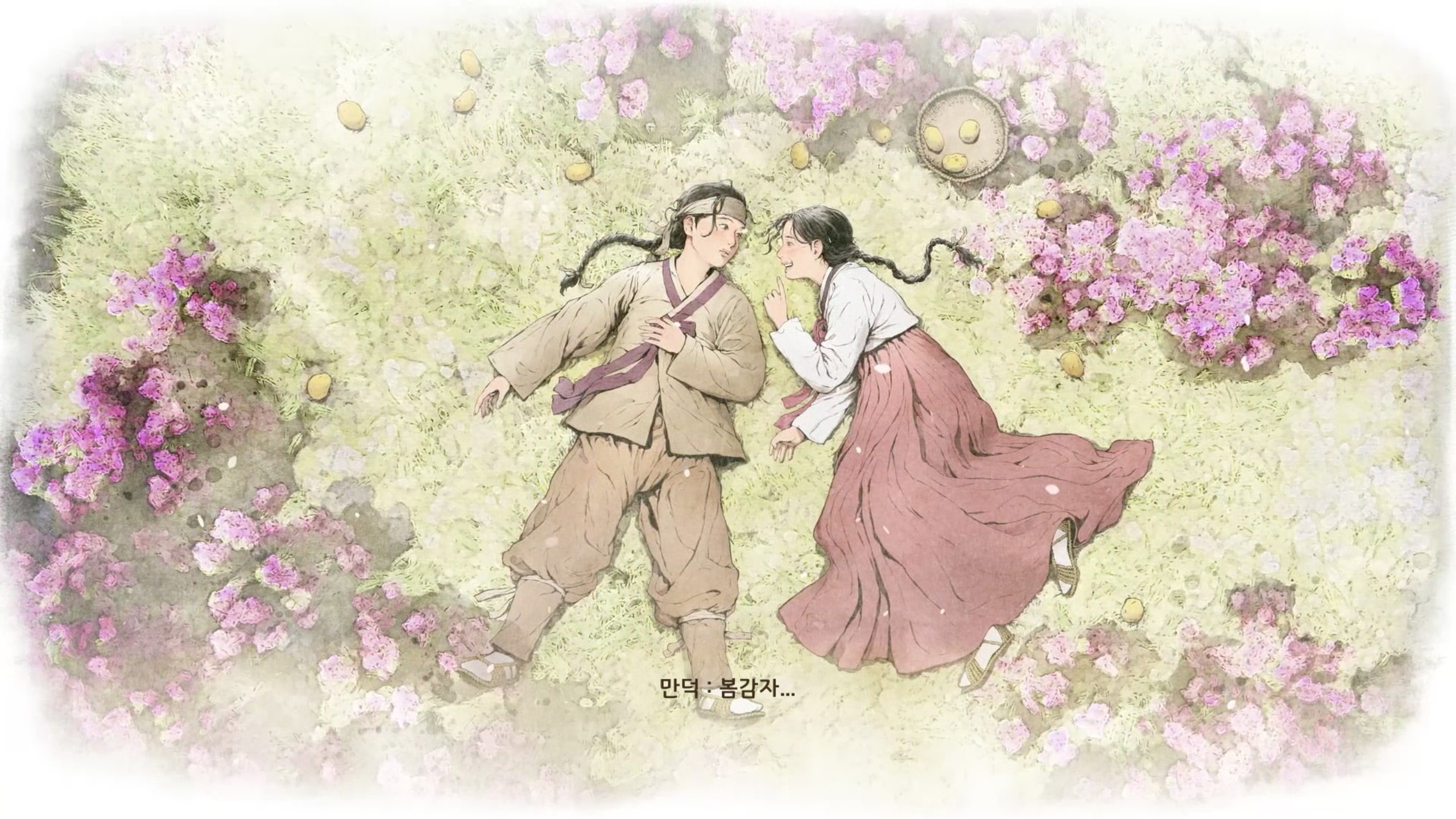 - 찐 감자를 달순이에게 건네기