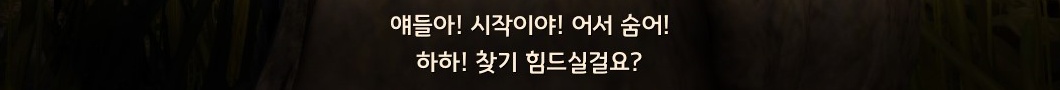 스샷을 1개 빼먹어서 2명이 숨은 곳만 있네요. 술래잡기가 시작되면 아이들이 뛰어다니면서 몸을 숨깁니다. 찾아서 다가가면 위에 말풍선이 뜨고 못 찾으면 다시 뛰어서 숨는 걸 볼 수 있으니 어렵지 않게 진행할 수 있어요.