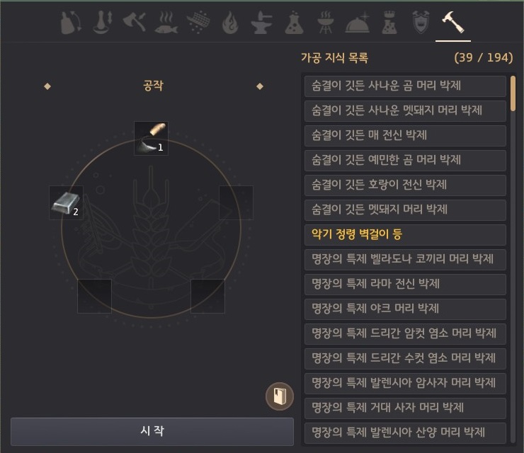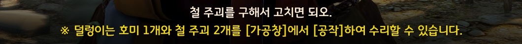 - 덜렁이는 호미 수리하기 재료를 준비 한 뒤 [가공창]에서 [공작]으로 수리할 수 있습니다.