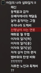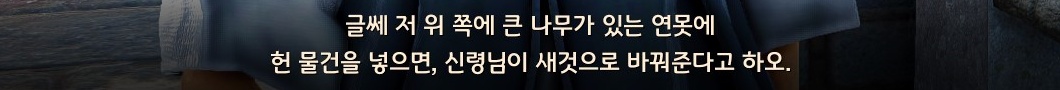추가된 의뢰 중에서 '[이야기] 신령님이 사는 연못' 의뢰에 대해서 글을 작성하려고 합니다.