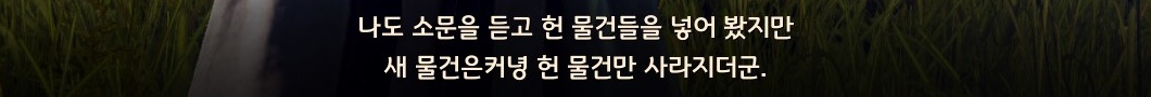 벽계섬에 헌 물건을 새 것으로 바꿔주는 신령님이 살고 있다는 소문이 돌고 있습니다.