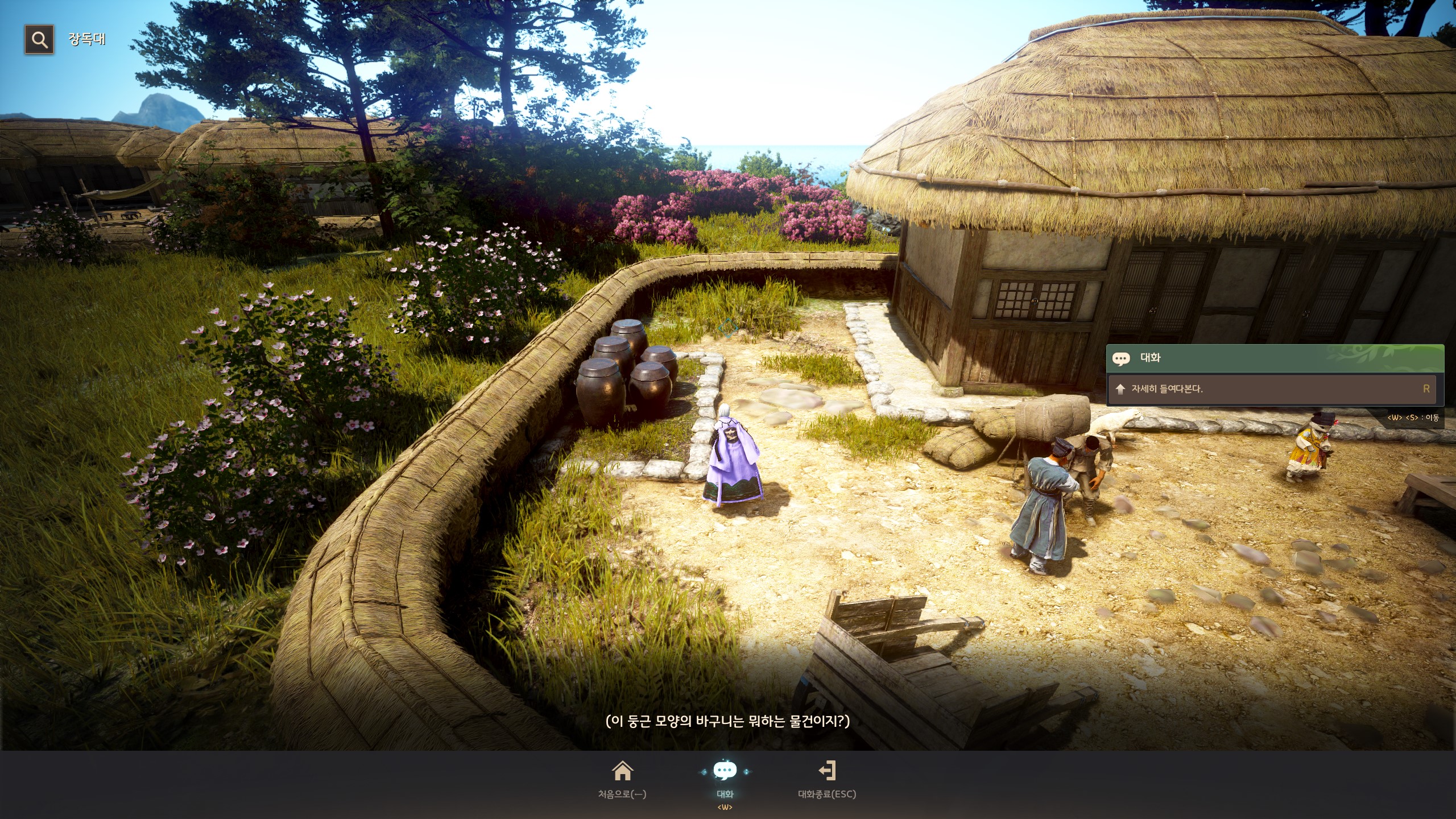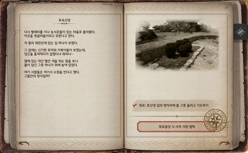 → 높새 볏골마을 <유배 중인> 토선생 집의 장독대 쪽에서 상호작용 포인트가 있어요.
