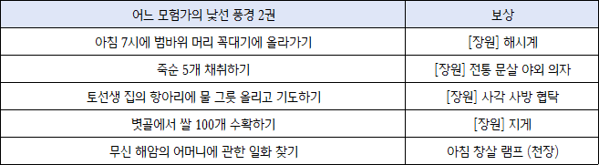 어느 모험가의 낯선 풍경 2권을 완료하면 주거지와 장원에 쓸 수 있는 아이템을 획득할 수 있어요.